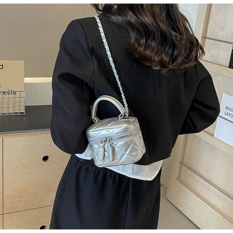 휴대용 Rhomboid 미니 체인 백 2024 여름 새로운 스타일 질감 세련된 어깨 가방 독특한 Ins 크로스 바디 백