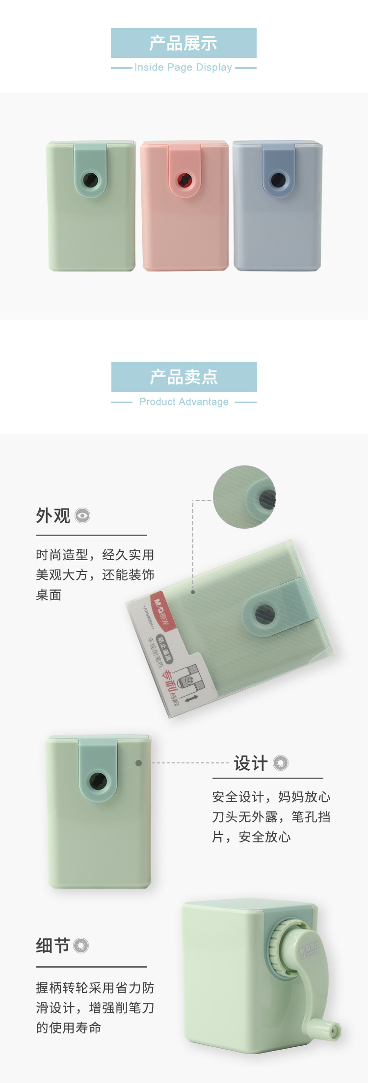 아침 햇빛 연필 깎이 도매 APS906H1 학생 가치 누출 방지 연필 깎이 노동 절약형 손으로 돌려서 연필을 막히게 하지 않습니다.