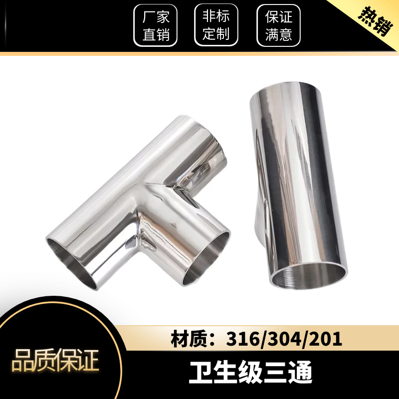 304 스테인레스 스틸 위생 식품 등급 용접 거울 3 방향 클램프 파이프 피팅 재고 대량 도매
