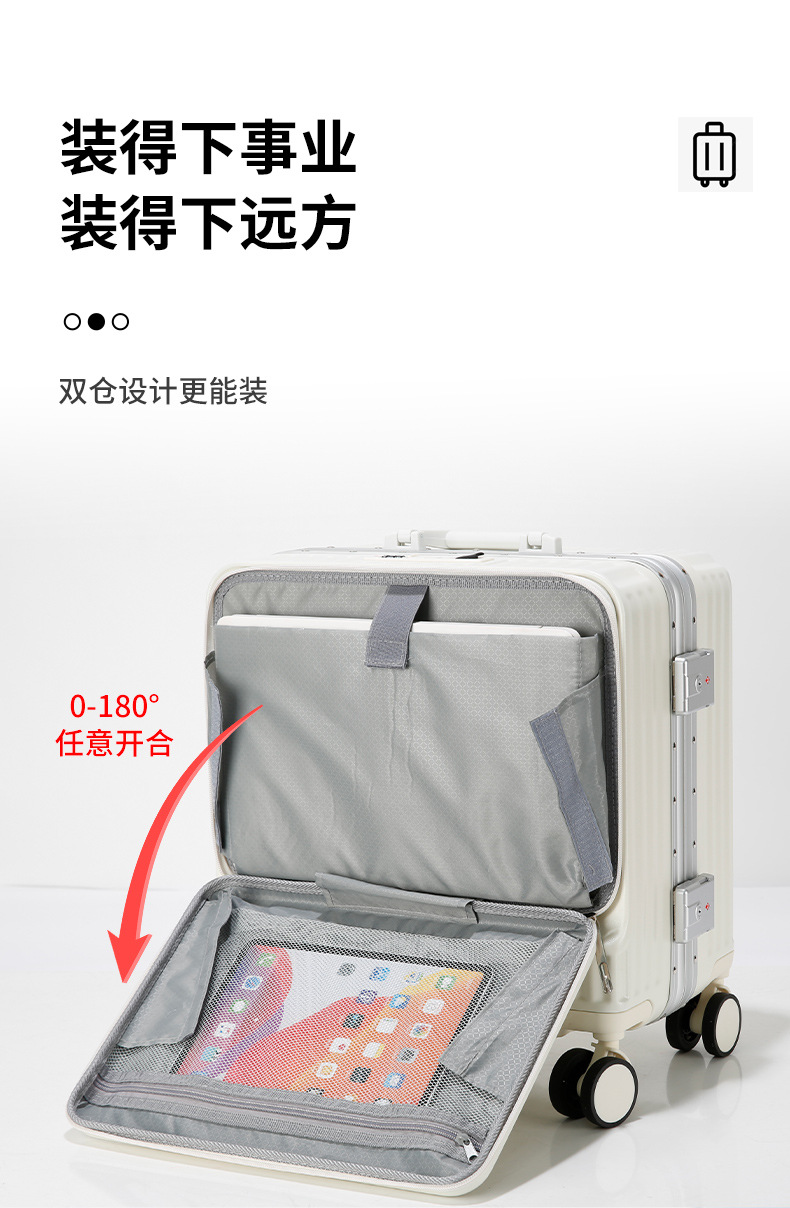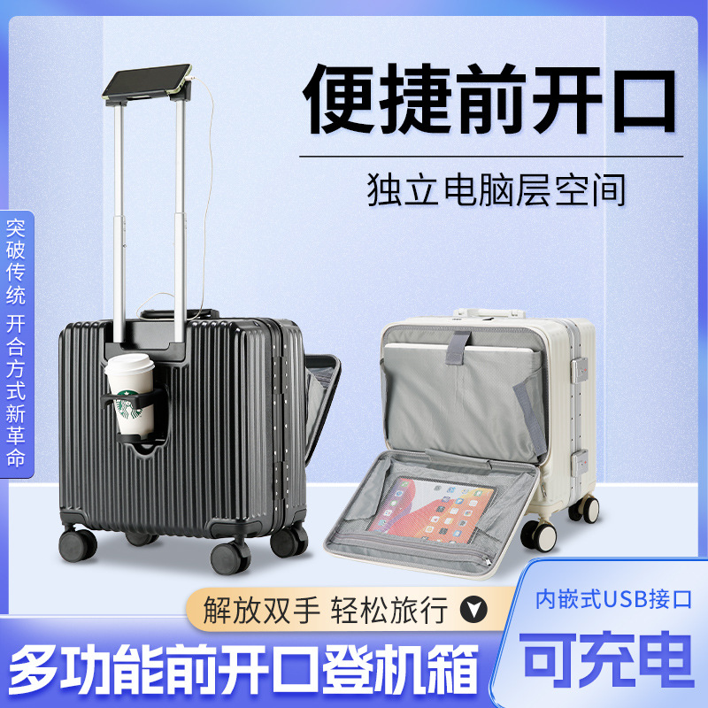 공장 다이렉트 마케팅 그물 레드 프론트 오프닝 18 인치 수하물 케이스 남성 및 여성용 다기능 수하물 케이스 충전 포트