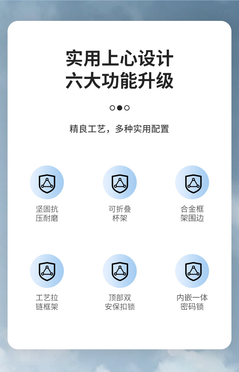 • 지퍼 616(신합금 소재) 전면 개구부 파우더(충전 포트 + 컵 홀더 + 휴대폰 홀더)