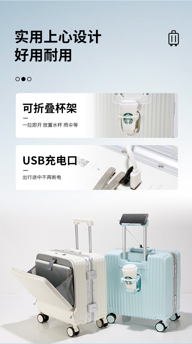 공장 다이렉트 마케팅 그물 레드 프론트 오프닝 18 인치 수하물 케이스 남성 및 여성용 다기능 수하물 케이스 충전 포트스토어 가기