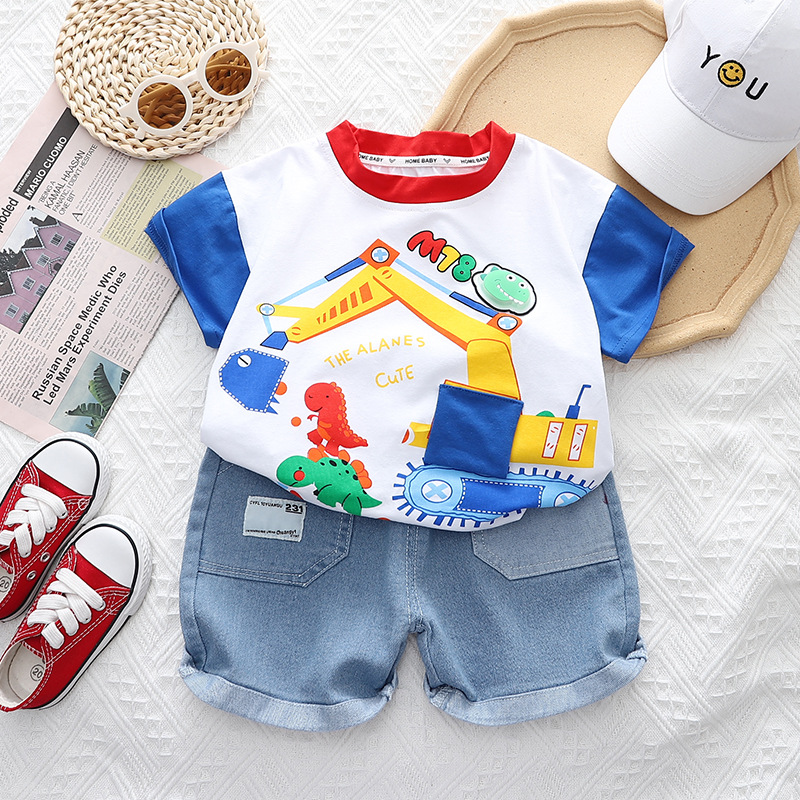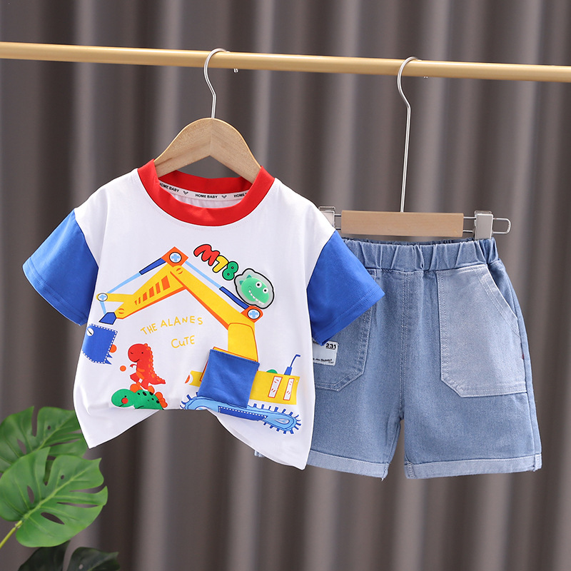어린이 만화 반팔 티셔츠 여름 2024 새로운 작은 소년 소녀 아기 반소매 한국식 서양식 청바지스토어 가기