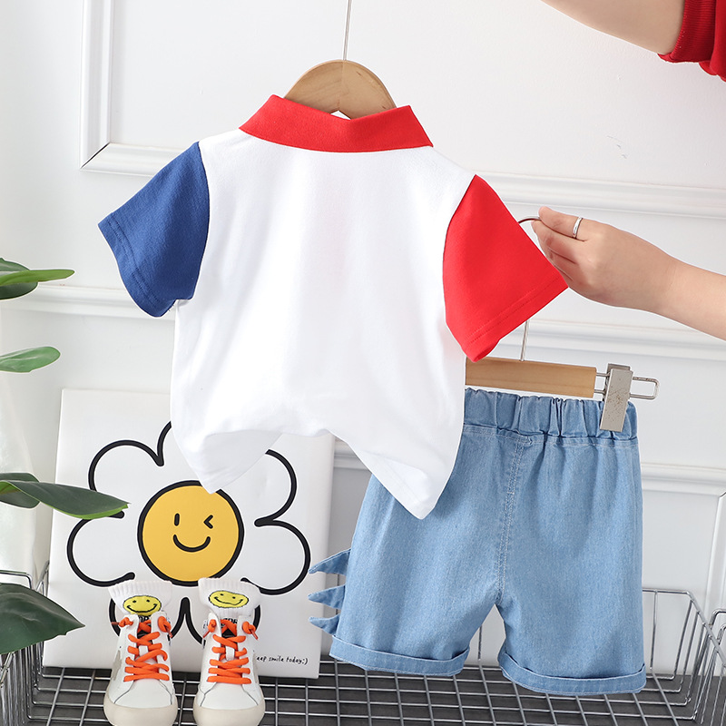 • 빨간 베이지 주머니 공룡 짧은 소매