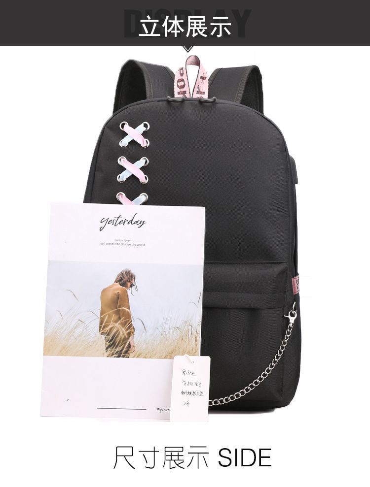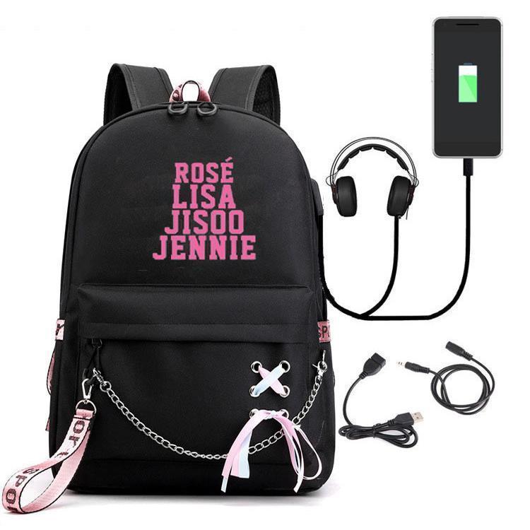 BLACKPINK Park Caaiying LISA Jin Zhixiu 같은 스타일의 배낭 USB 충전 학생 여성 대용량 배낭