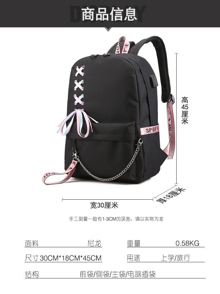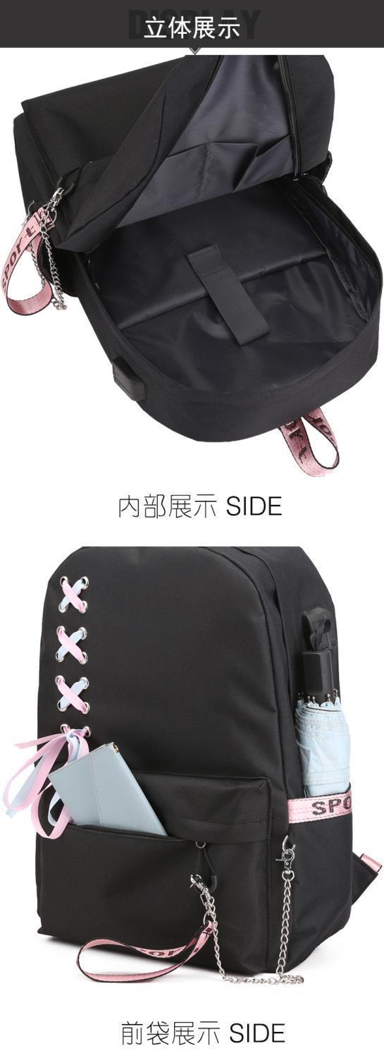 BLACKPINK Park Caaiying LISA Jin Zhixiu 같은 스타일의 배낭 USB 충전 학생 여성 대용량 배낭스토어 가기