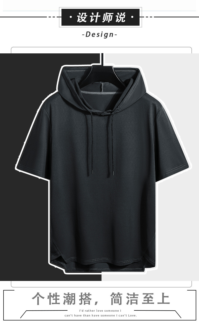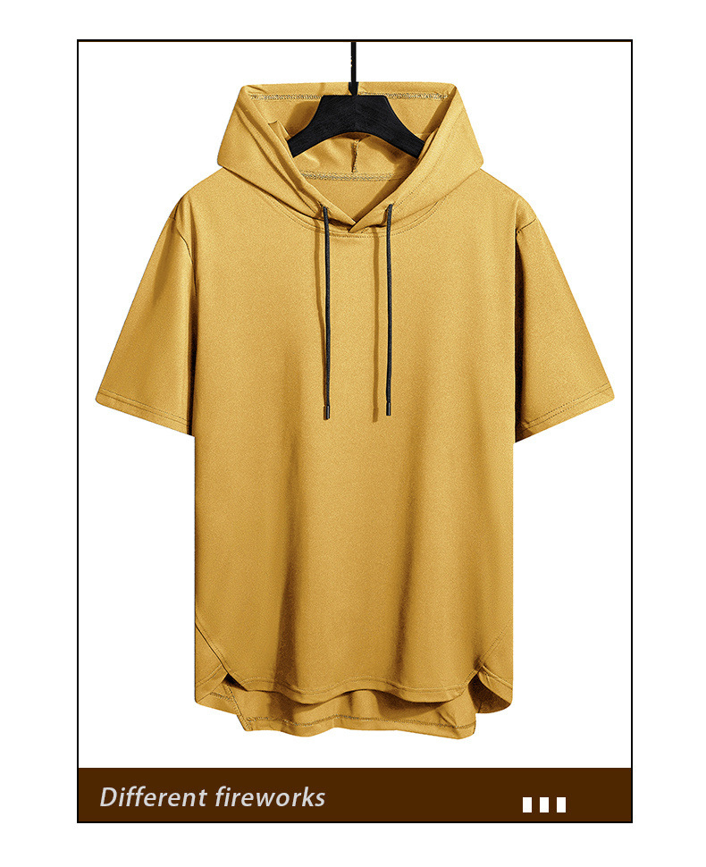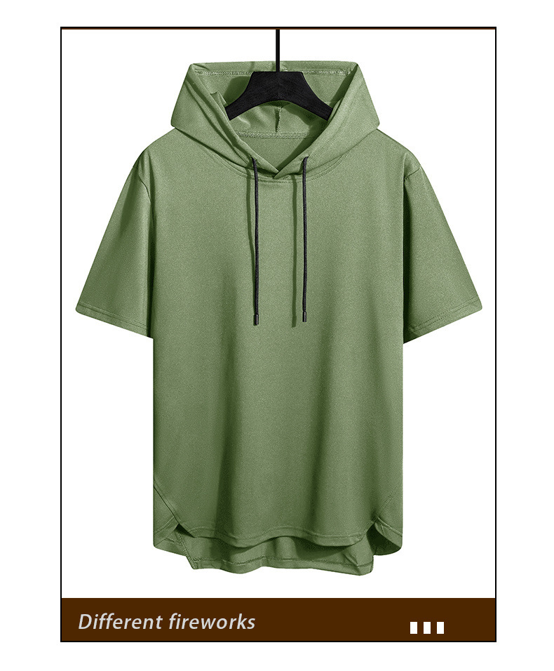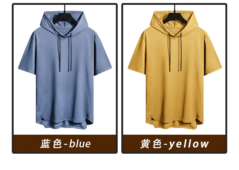 솔리드 컬러 남성용 후드 반팔 티셔츠 남성용 여름 통기성 느슨한 후드 트렌디 남성용 얇은 풀오버 반소매 스웨터스토어 가기