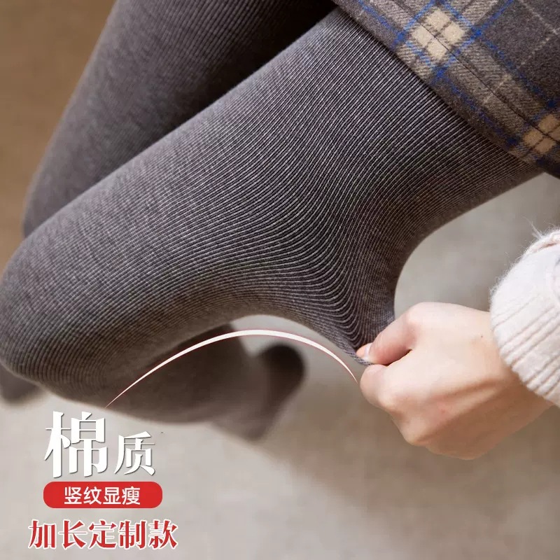 긴 면화 다크 그레이 봄과 가을 팬티 스타킹 세로 줄무늬 키 175cm 높이 허리 배 수축 레깅스 양말을 기모 않습니다.스토어 가기