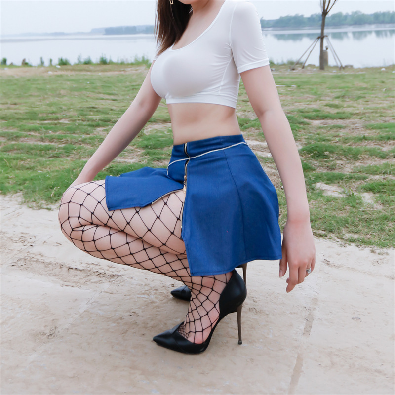 초단치마, 초노출 데님 A라인 스커트, 우산 스커트, 시스루 섹시 슬릿, 하이웨이스트, 엉덩이 노출, 안감 없는 미니 스커트스토어 가기