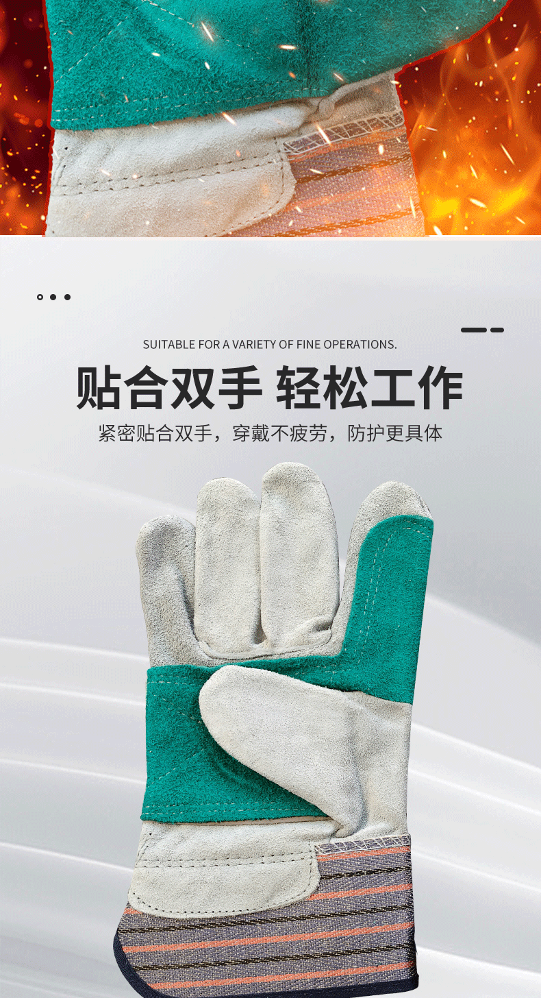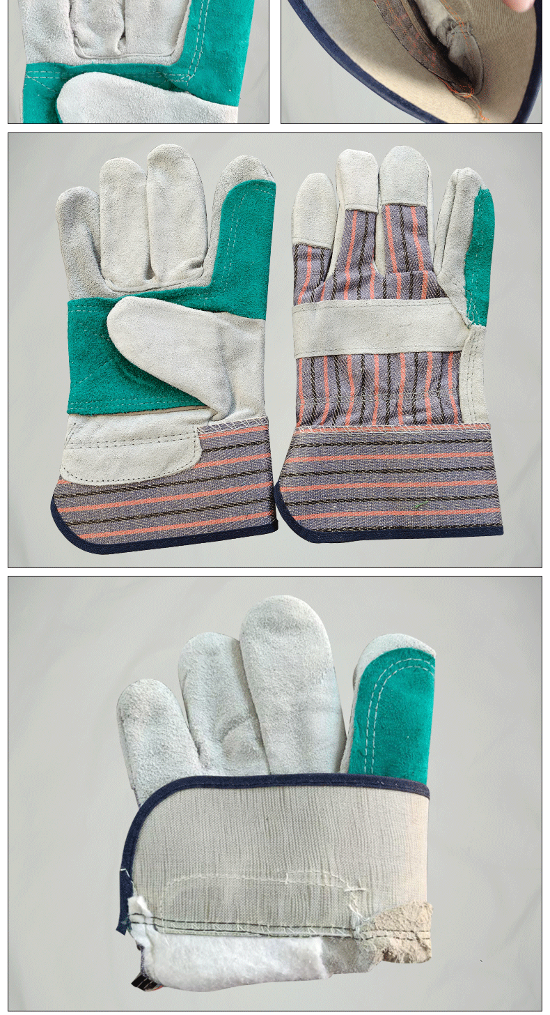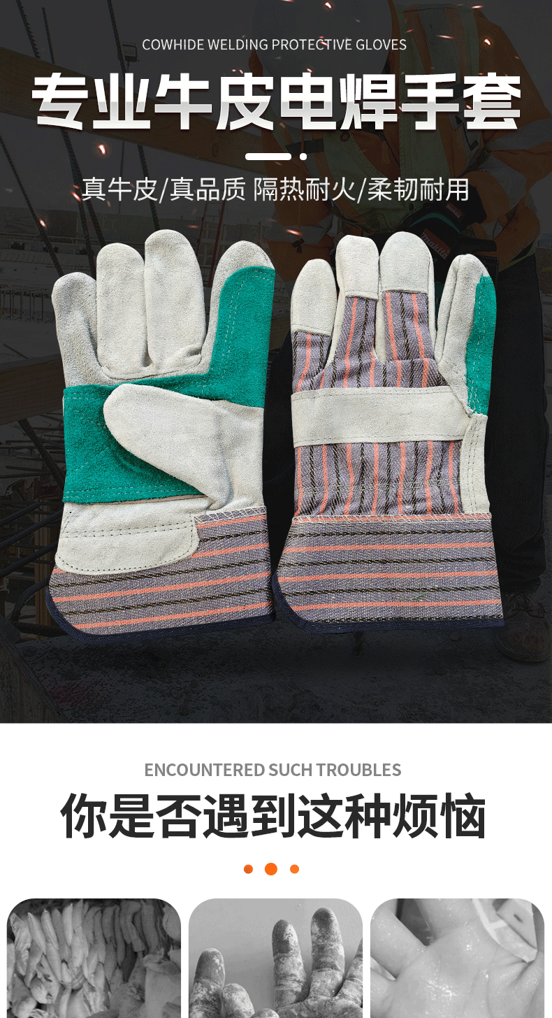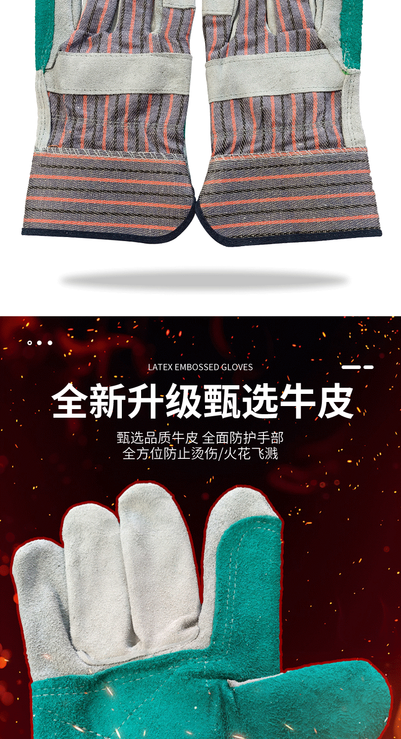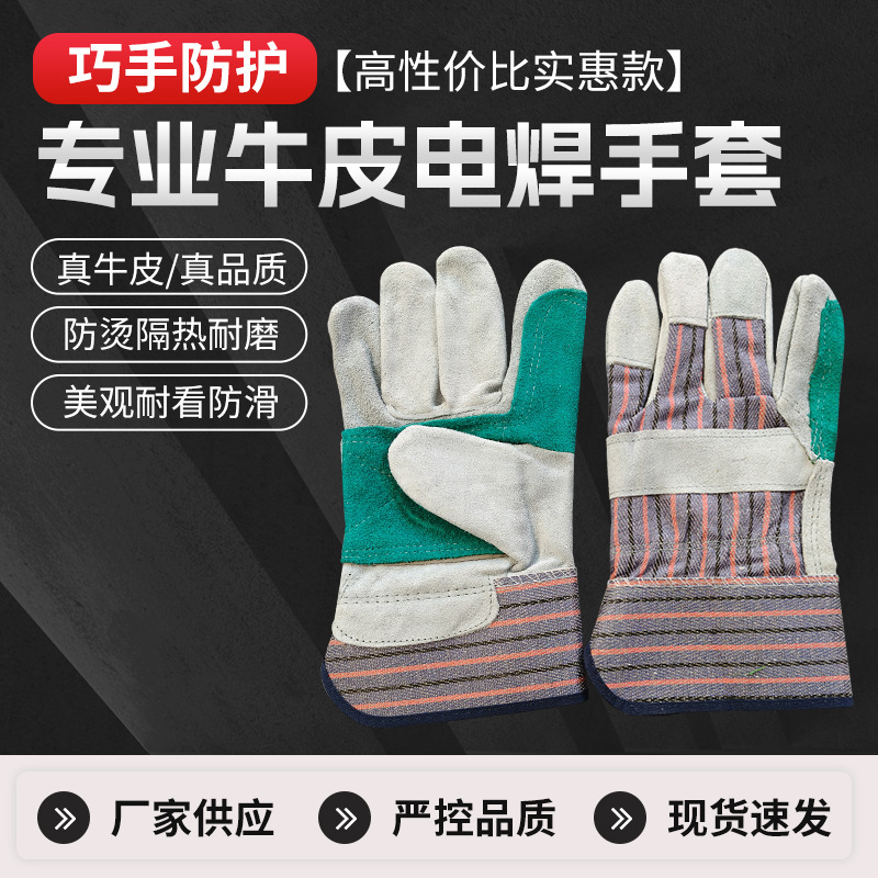 소가죽 용접 장갑, 손바닥 전체 줄무늬 천, 2층 노동 보호 장갑, 절연 용접 특수 화상 방지 용접 장갑
