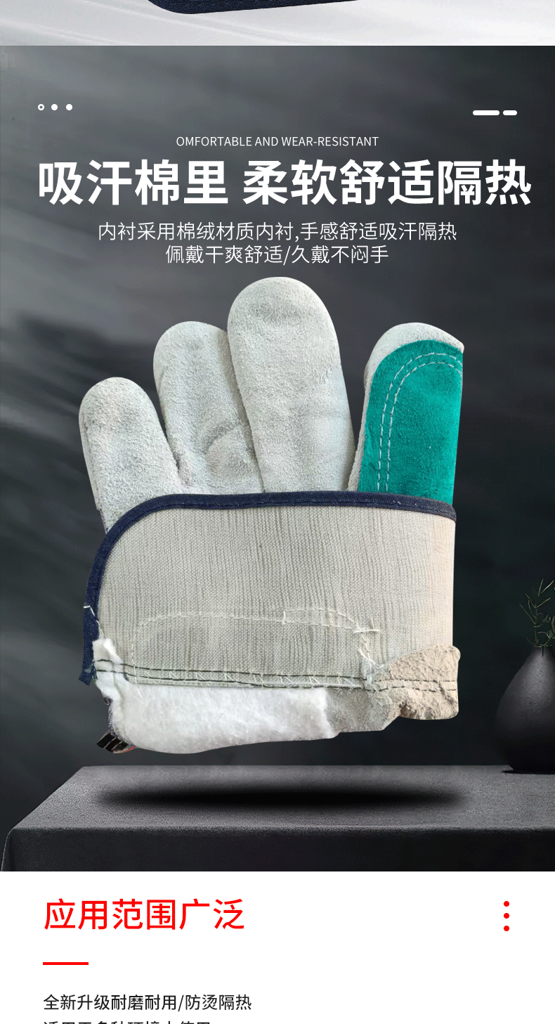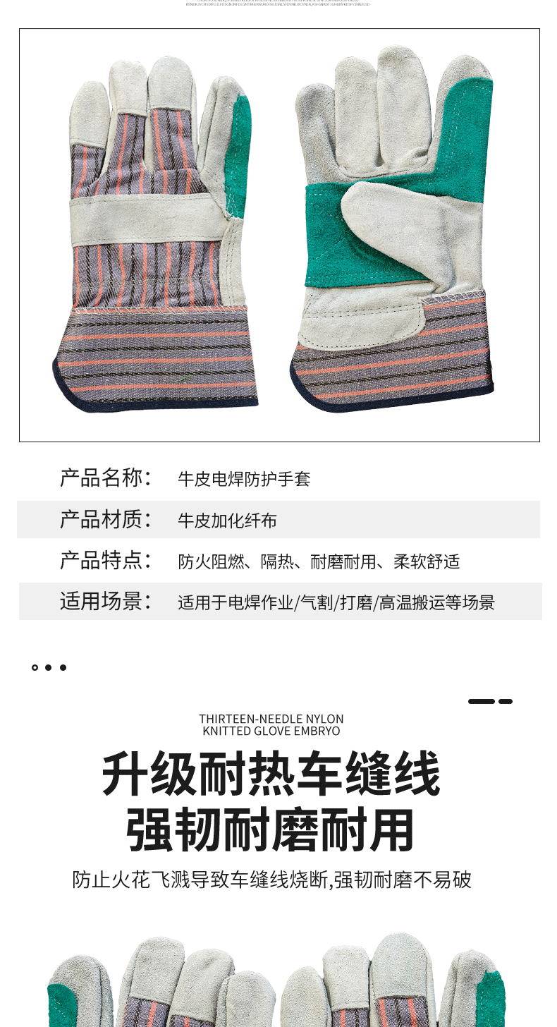 소가죽 용접 장갑, 손바닥 전체 줄무늬 천, 2층 노동 보호 장갑, 절연 용접 특수 화상 방지 용접 장갑스토어 가기
