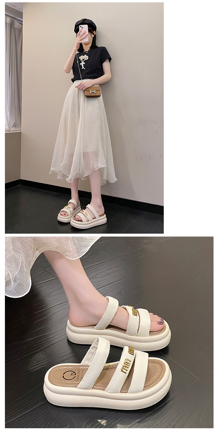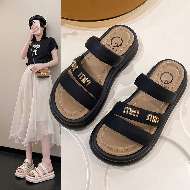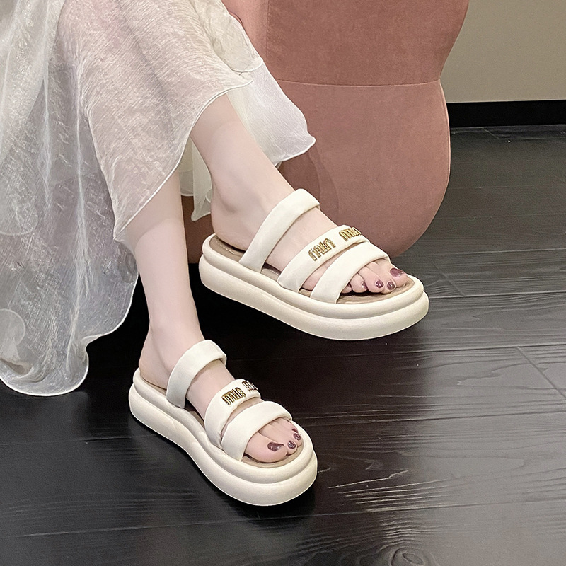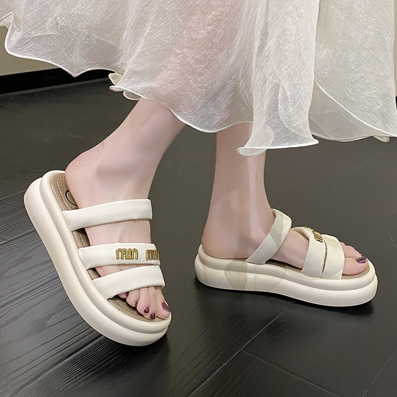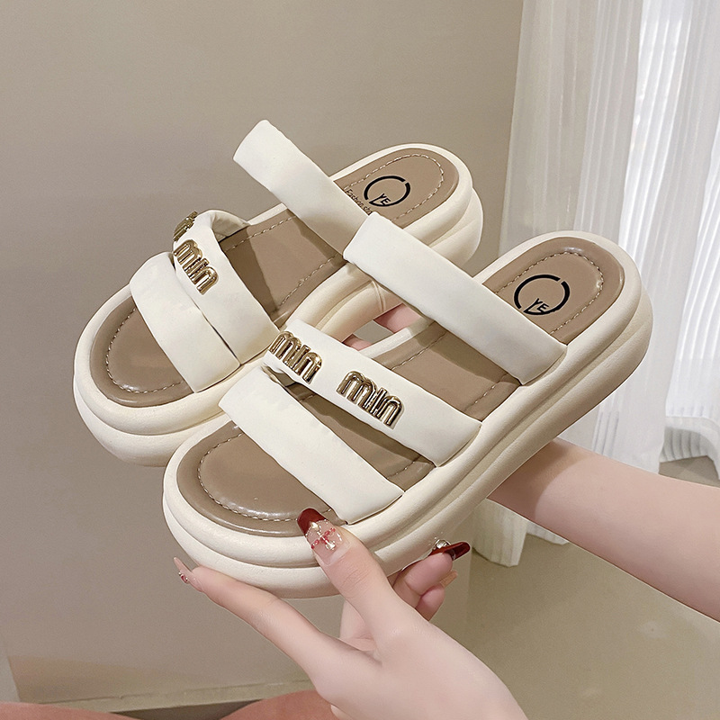 여성의 두꺼운 밑창 비치 슬리퍼 2024 여름 새로운 부드러운 밑창 캐주얼 야외 샌들 올 매치 홈 실내 슬리퍼스토어 가기