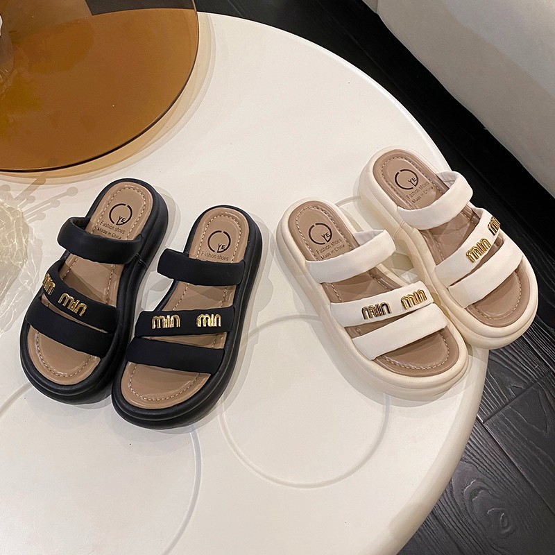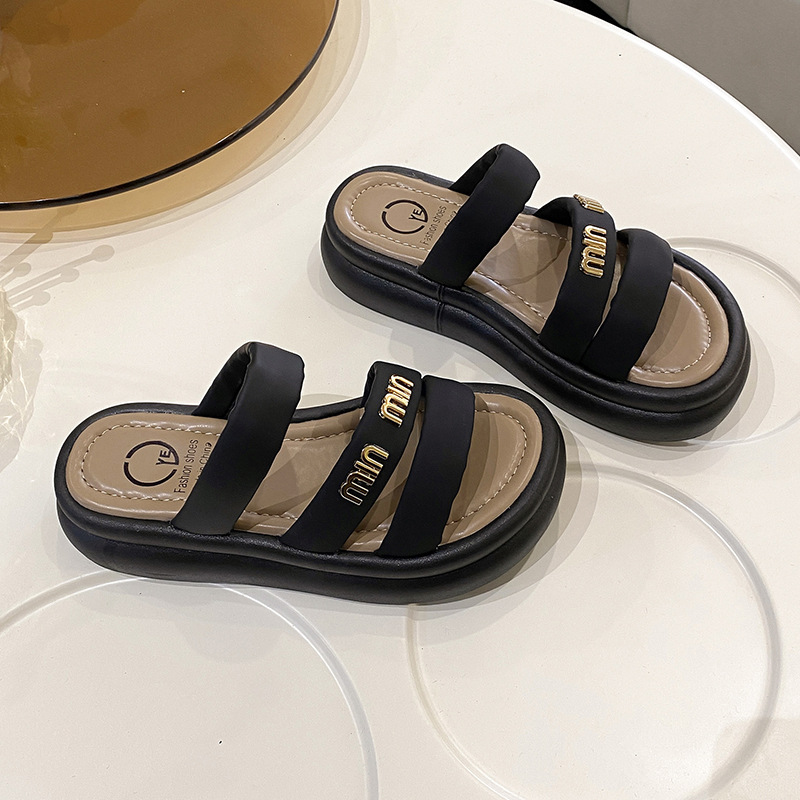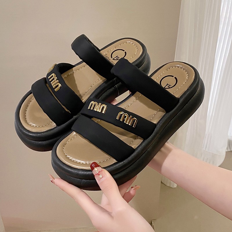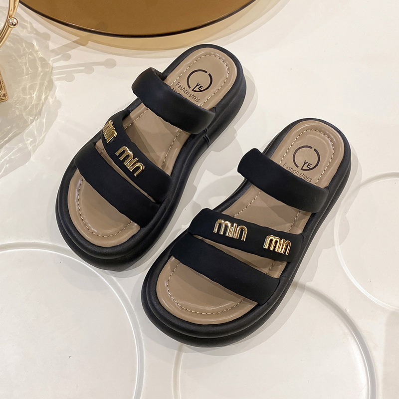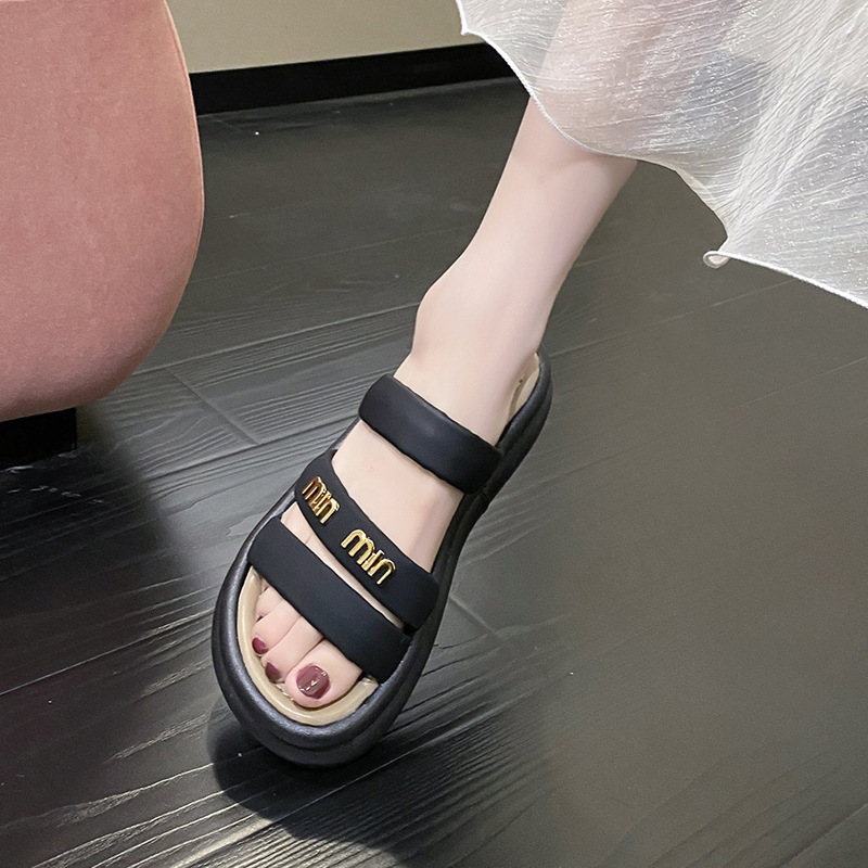 여성의 두꺼운 밑창 비치 슬리퍼 2024 여름 새로운 부드러운 밑창 캐주얼 야외 샌들 올 매치 홈 실내 슬리퍼스토어 가기