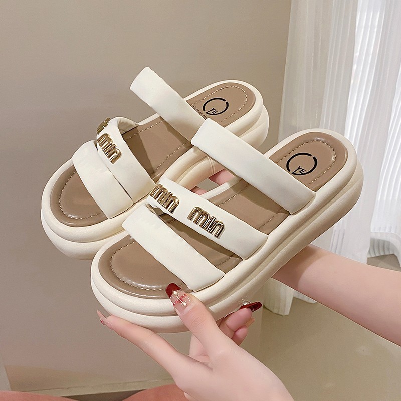 여성의 두꺼운 밑창 비치 슬리퍼 2024 여름 새로운 부드러운 밑창 캐주얼 야외 샌들 올 매치 홈 실내 슬리퍼