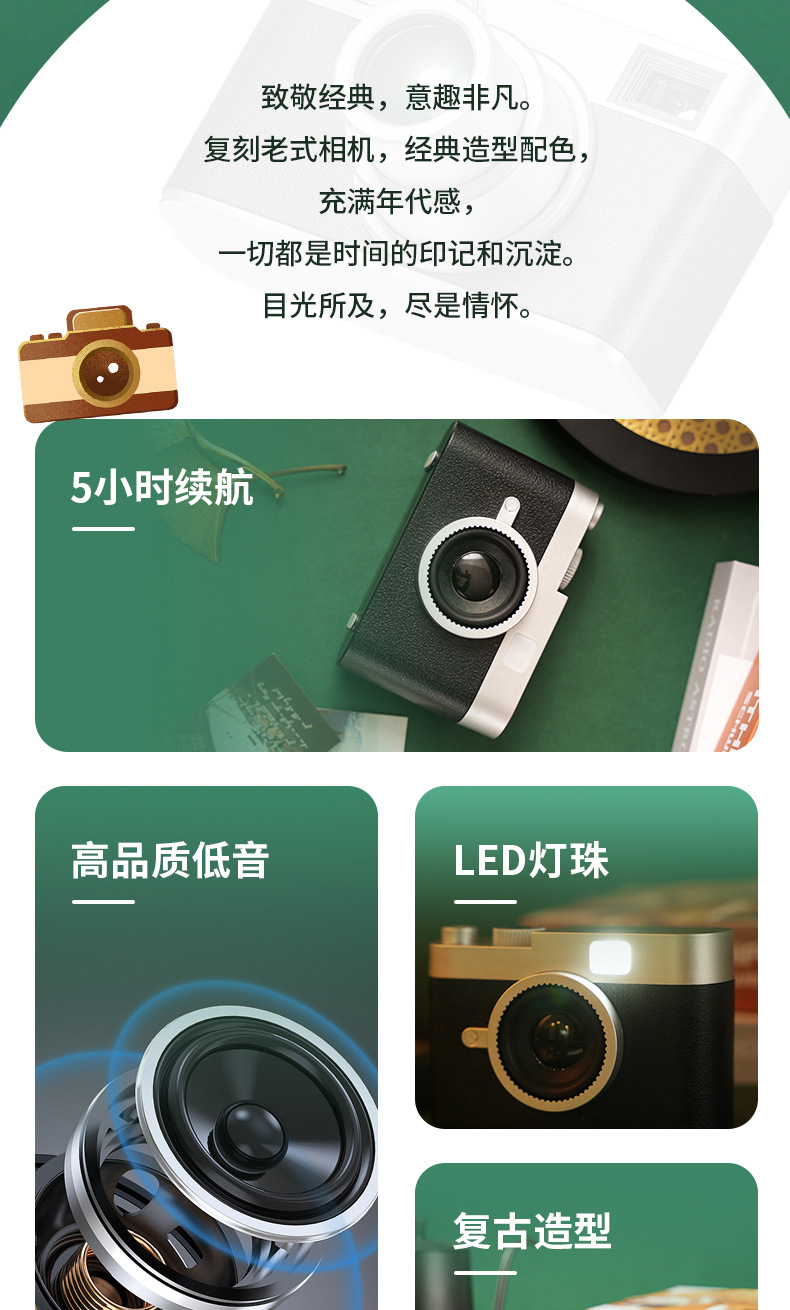 블루투스 스피커 무선 스피커 카메라 모델링 높은 음질 오디오 가벼운 홈 연인 선물 높은 색상 가치스토어 가기