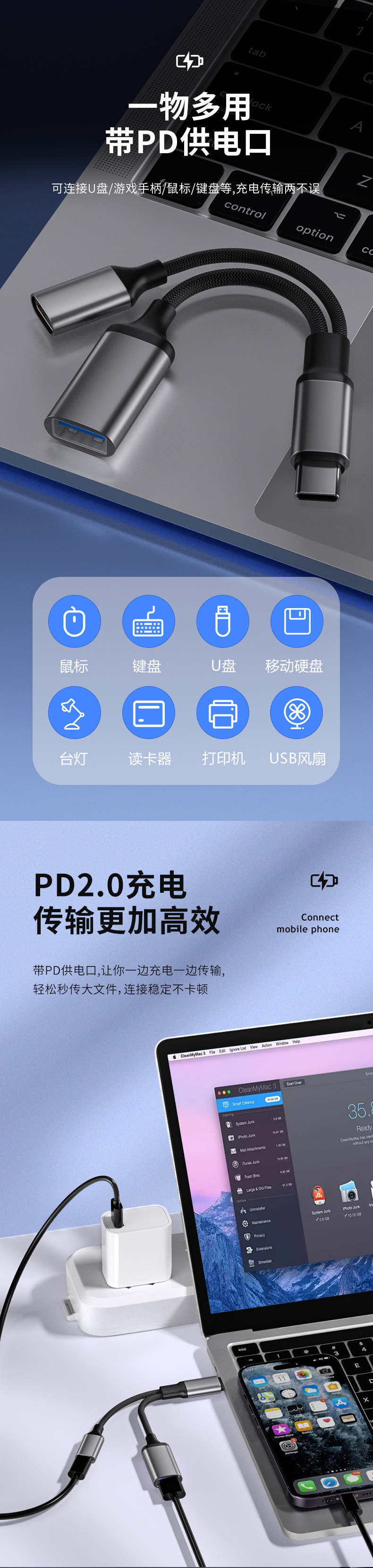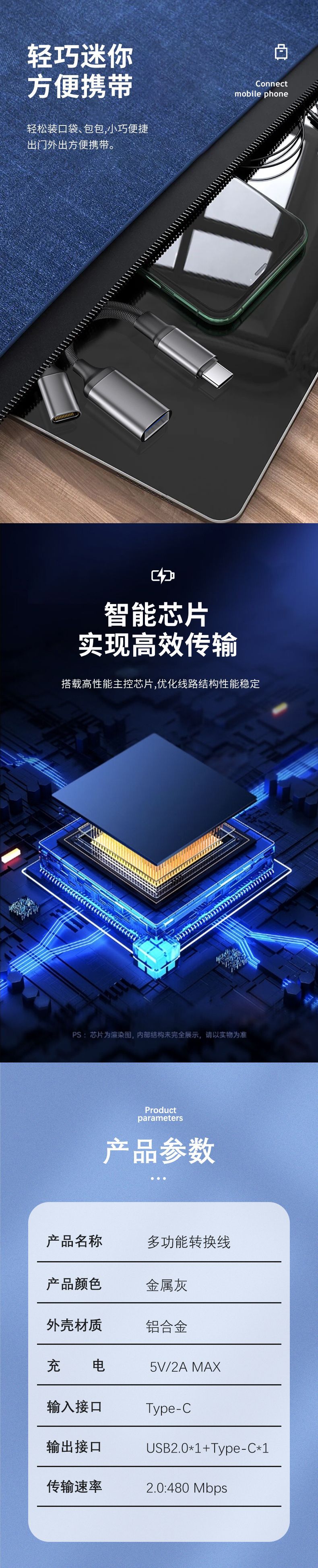 Typec 인터페이스 허브 1-2 어댑터 typec 충전 USB USB 다운로드 휴대 전화 ipad 변환기에 적합스토어 가기