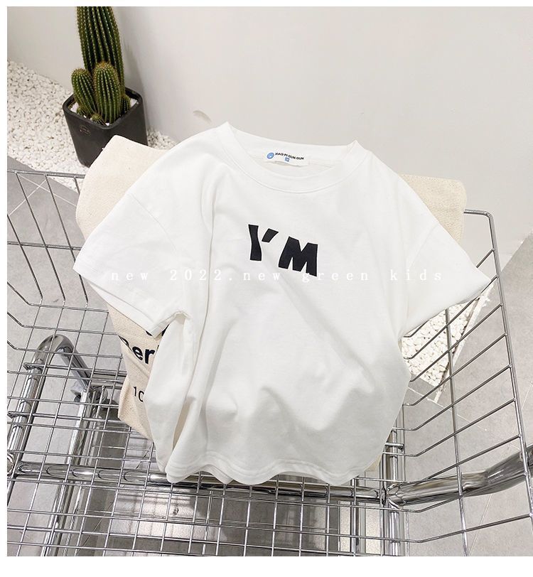 여름 남성과 여성의 반팔 티셔츠 아기 서양식 어린이 성격 트렌디 INS 편지 대외 무역 순면 반소매 탑스토어 가기