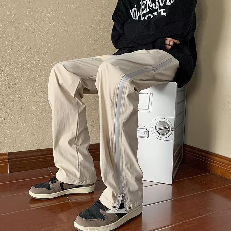 전투 바지 봄과 여름 미국의 느슨한 사이드 지퍼 스트레이트 바지 남성 패션 브랜드 야외 기능성 캐주얼 바지