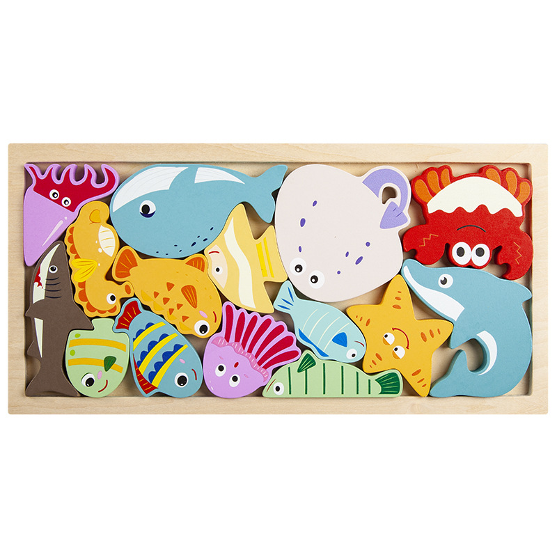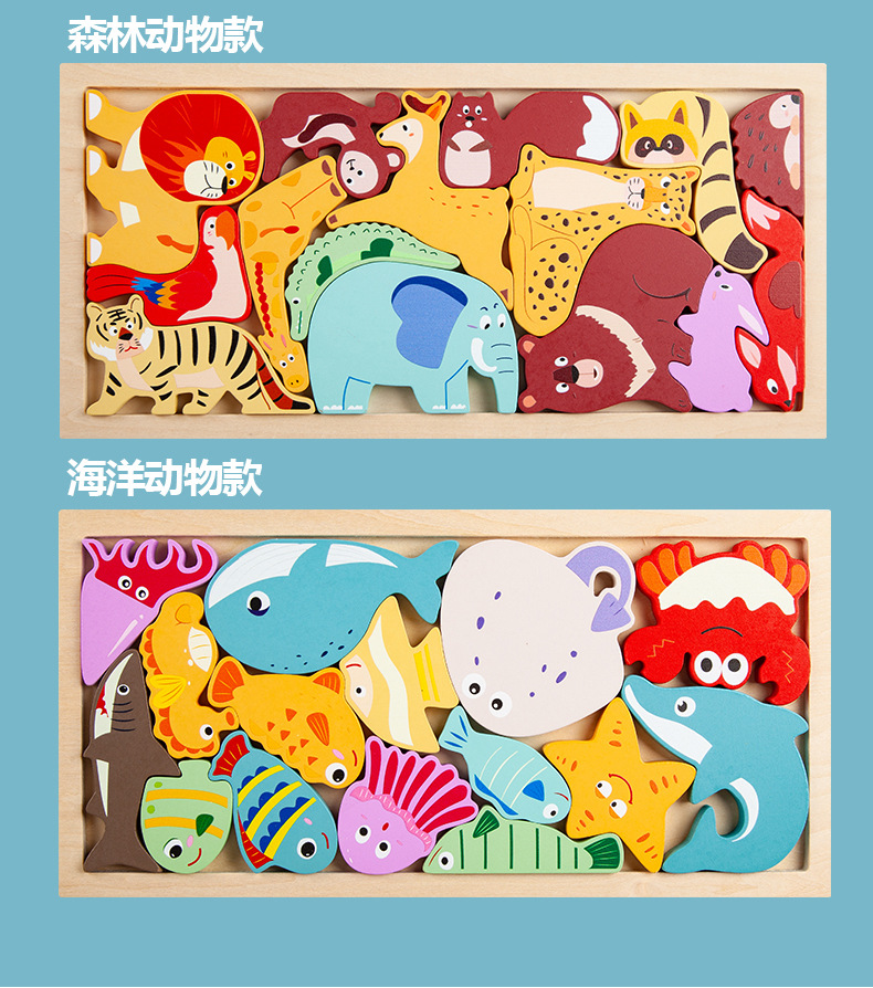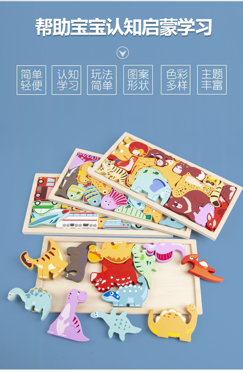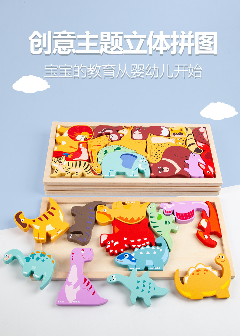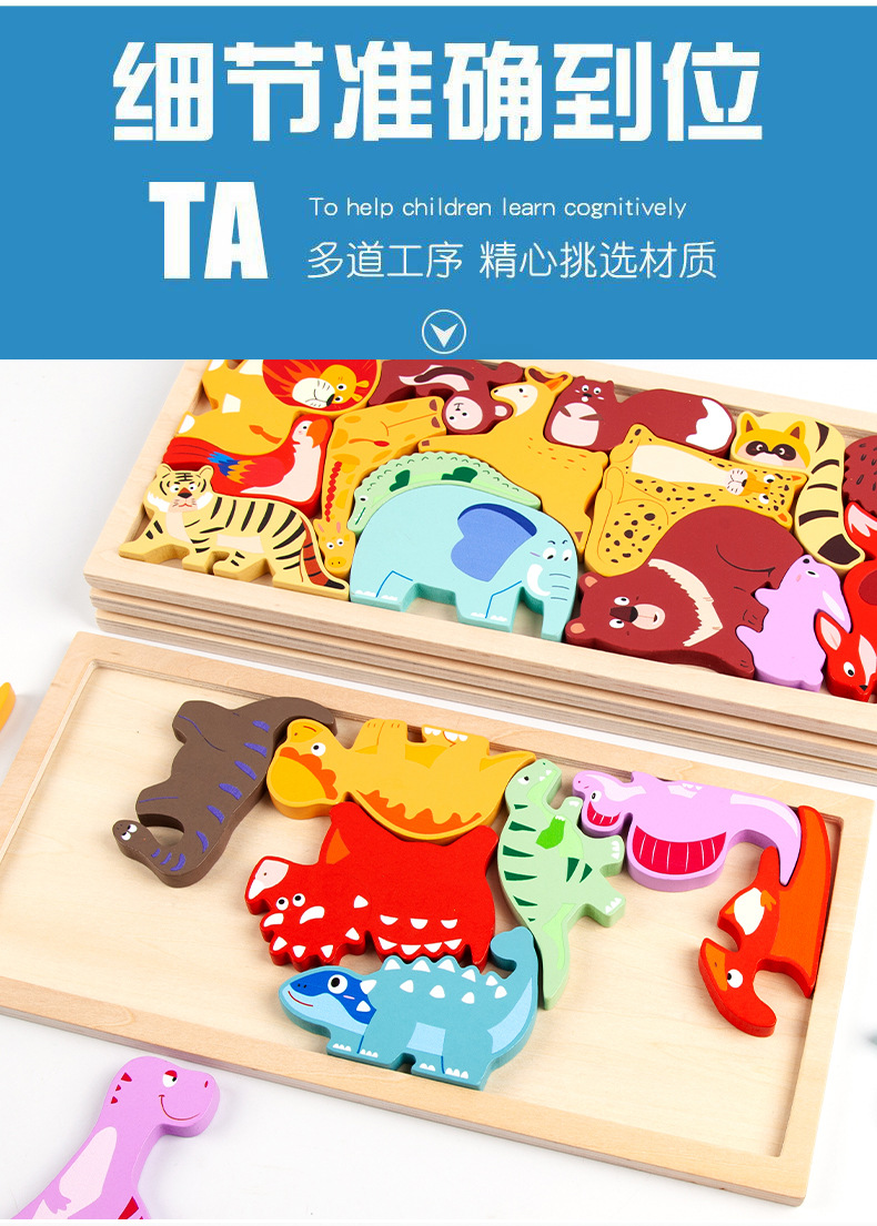 운허목완 외국 무역 교육용 몬테소리 조기교육 나무 블록 창의적 테마 입체 퍼즐 장난감