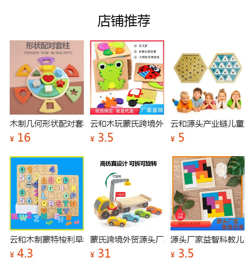 운허목완 외국 무역 교육용 몬테소리 조기교육 나무 블록 창의적 테마 입체 퍼즐 장난감스토어 가기