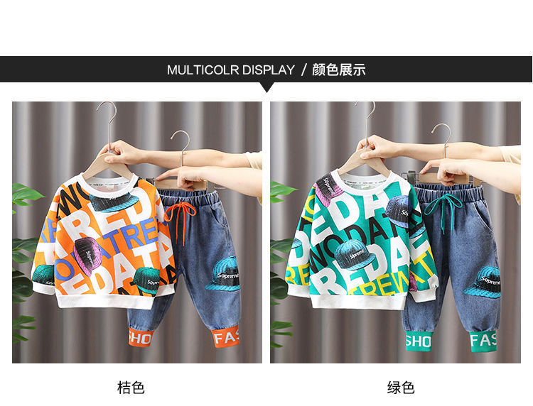 남자들의 가을 옷 세트 서양식 캐주얼 옷 어린이 봄과 가을 스웨터 투피스 세트 유행 아동복 도매 원피스 배달스토어 가기