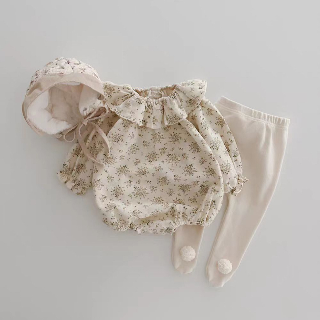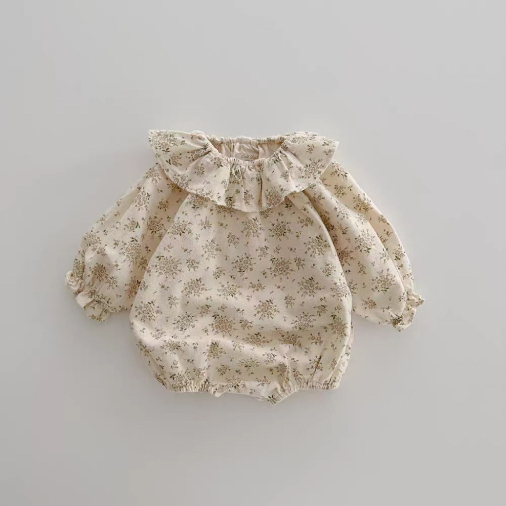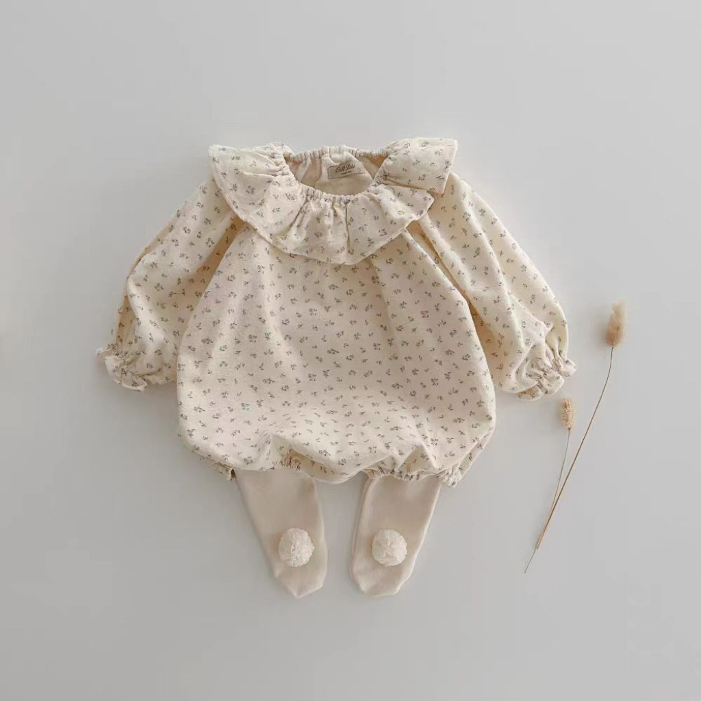 한국 스타일의 새로운 아기 소녀 꽃 로터스 칼라면 원피스 삼각형 롬퍼 가방 봄 및 가을 100 일 보름달 방귀스토어 가기