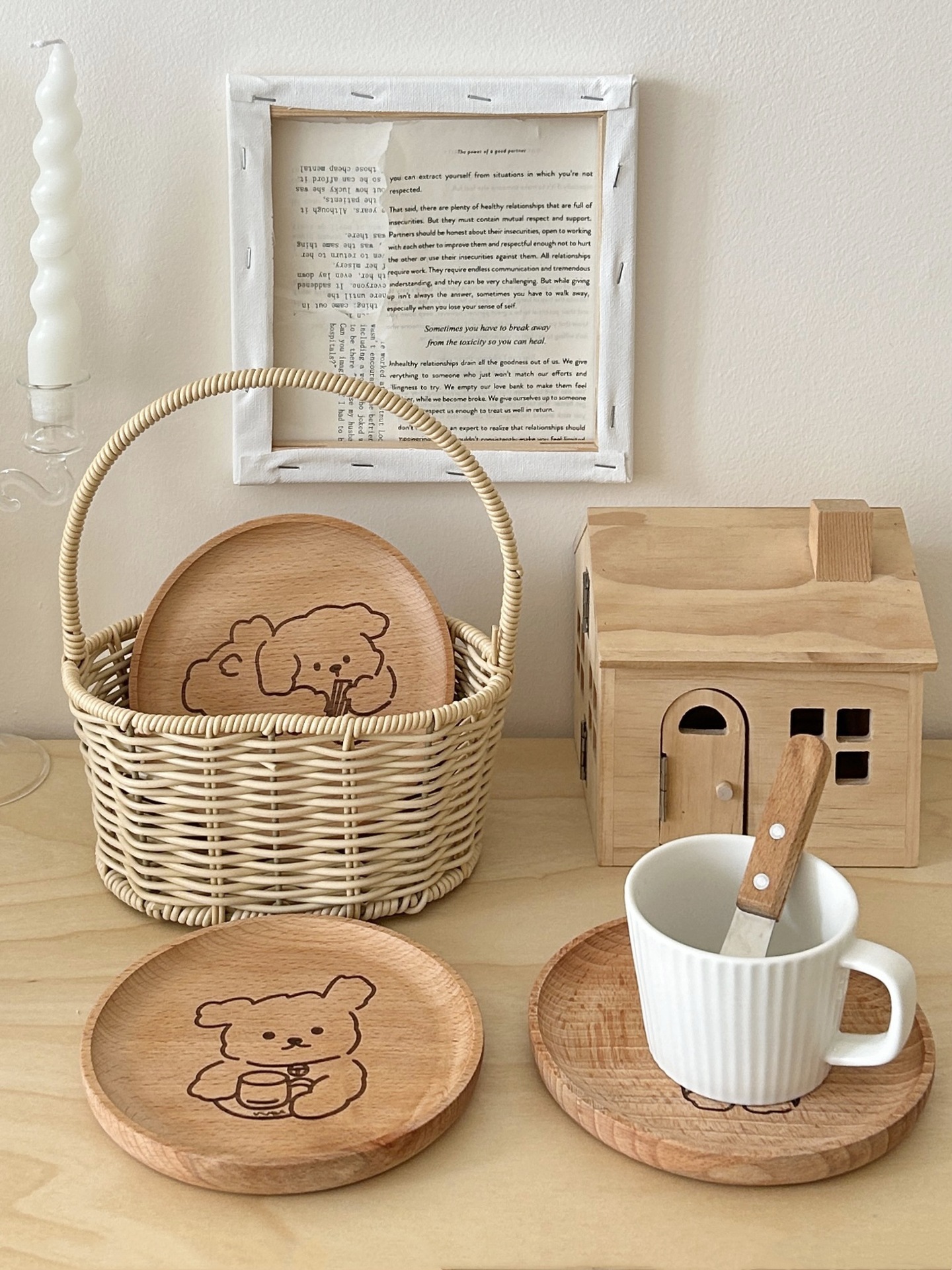 한국 유니언 스타일 컵받침~너도밤나무 식기 장식 접시 식품 등급 식기류 목재 제품 인스타그램 샤오홍슈스토어 가기