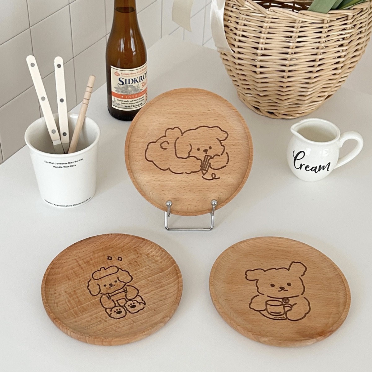 한국 유니언 스타일 컵받침~너도밤나무 식기 장식 접시 식품 등급 식기류 목재 제품 인스타그램 샤오홍슈