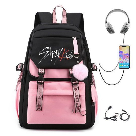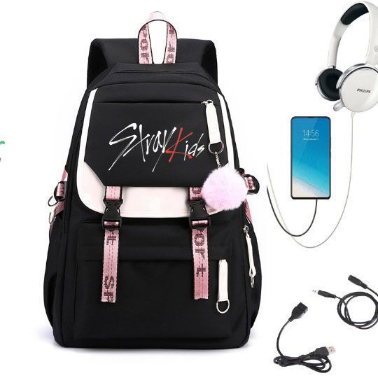 새로운 StrayKids 리터 배낭 주변 같은 스타일의 학생 책가방 배낭 USB 충전식 레저 가방 여행 배낭스토어 가기