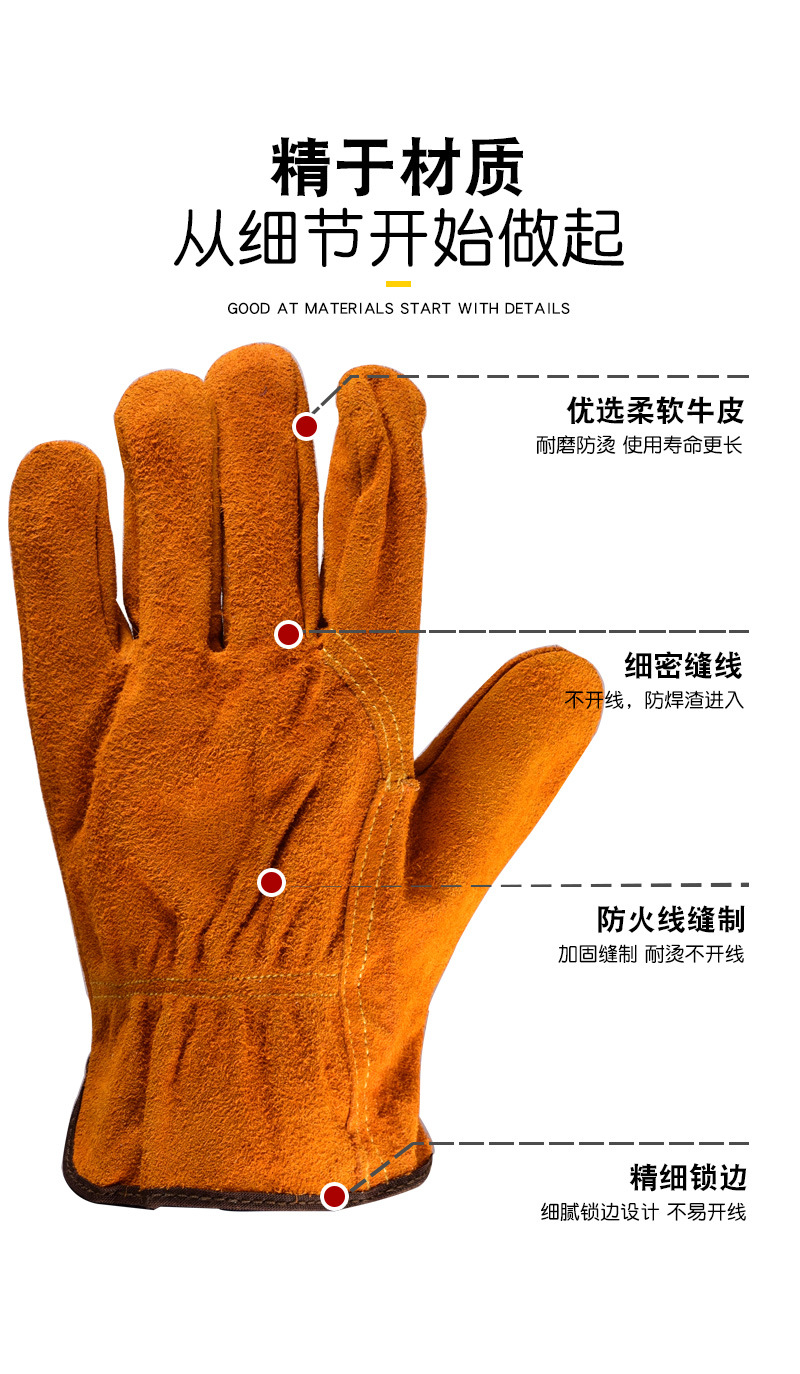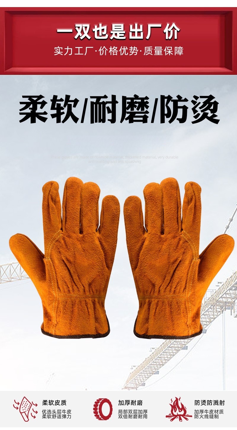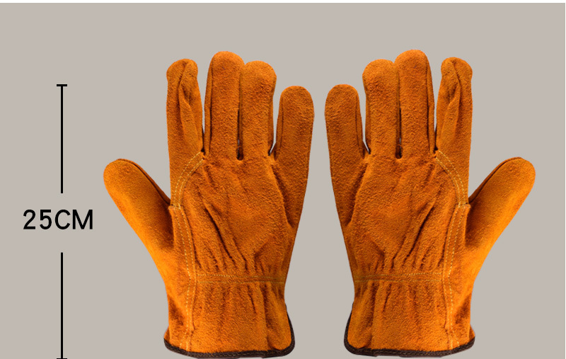 소가죽 2층 용접 장갑 내마모성 화상 방지 단열 부드러운 용접기 내구성 보호 노동 보호 짧은 장갑