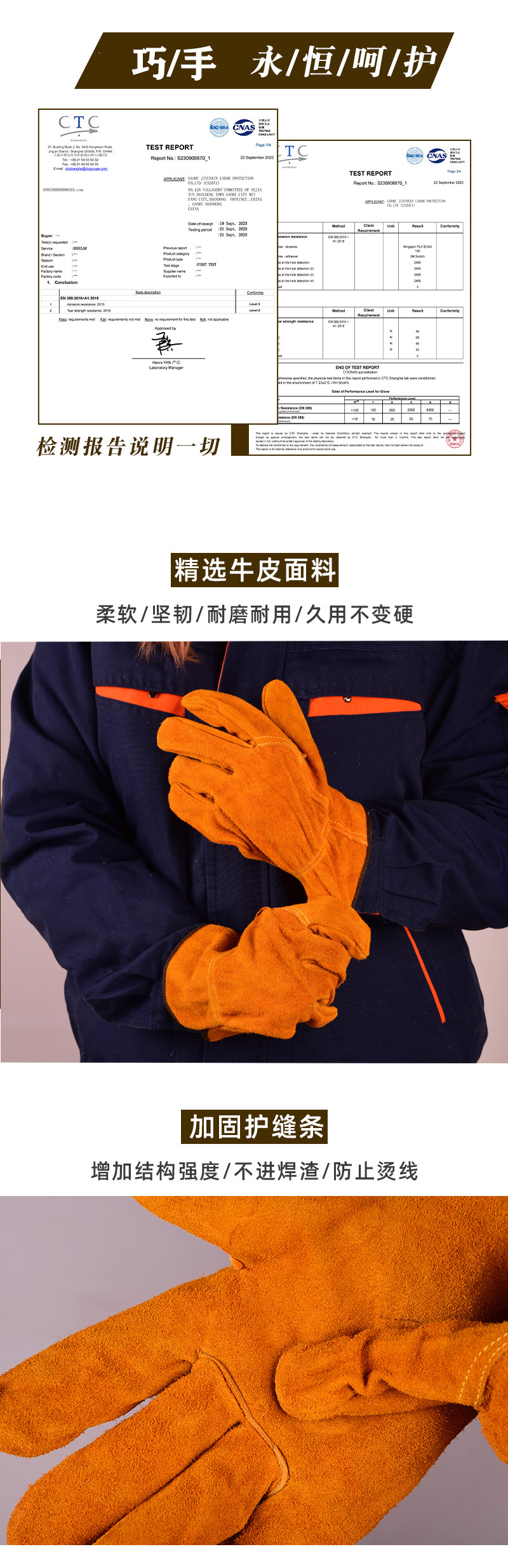 소가죽 2층 용접 장갑 내마모성 화상 방지 단열 부드러운 용접기 내구성 보호 노동 보호 짧은 장갑스토어 가기