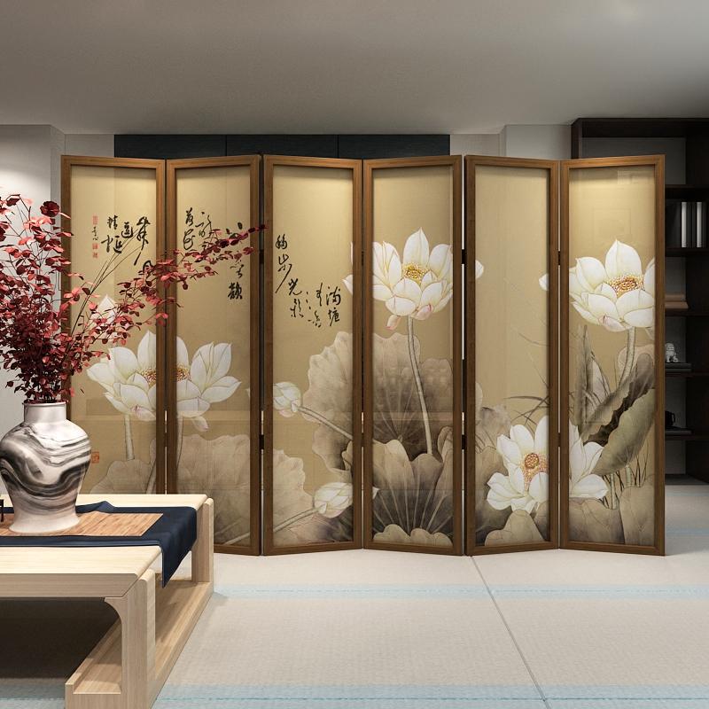 중국 스크린 파티션 패션 거실 호텔 침실 사무실 중국 스타일 복도 반투명 접이식 로터스 접이식 화면 양면