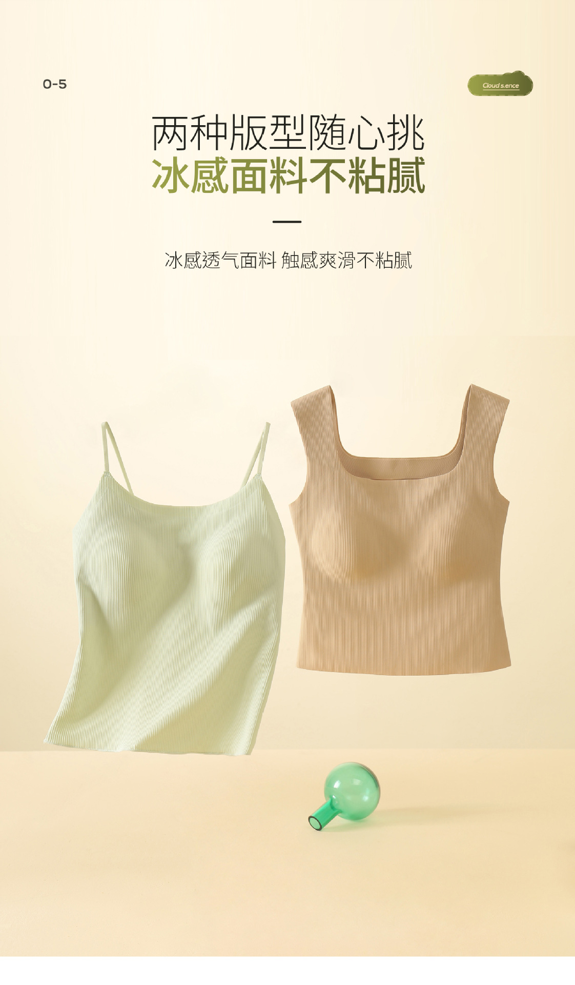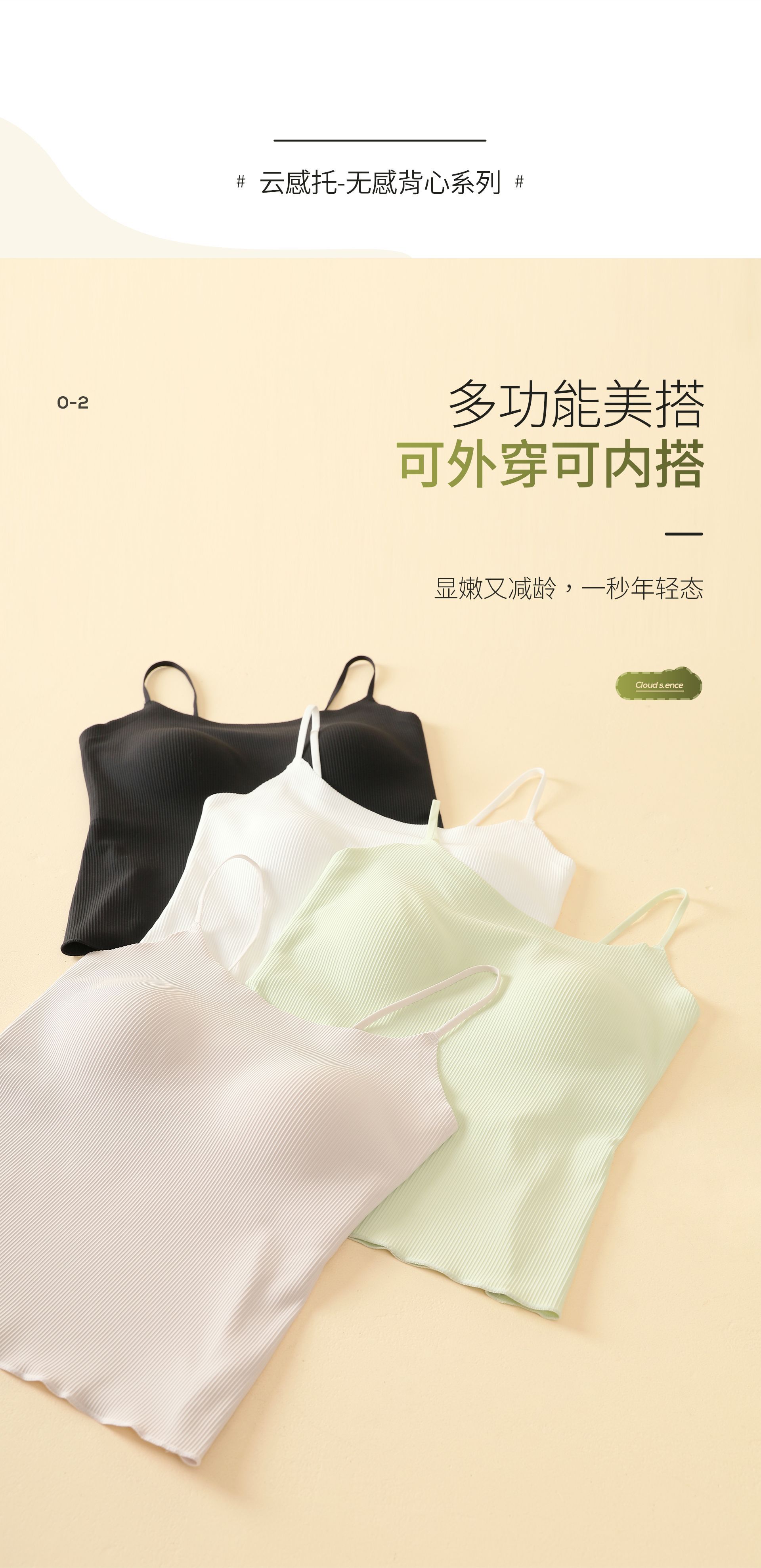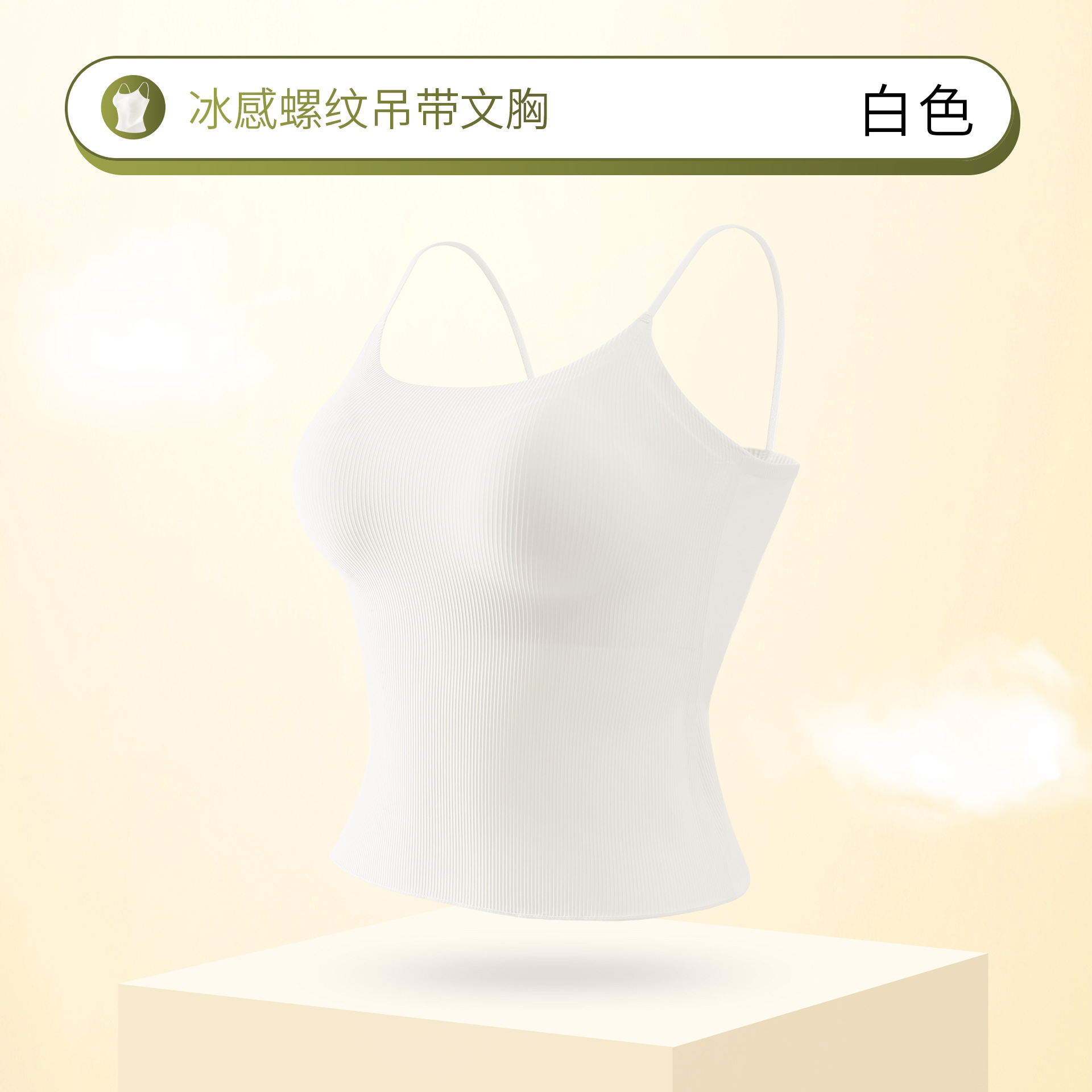 螺纹小吊带背心女士桑蚕丝外穿内搭打底白色遮副乳防走光上衣