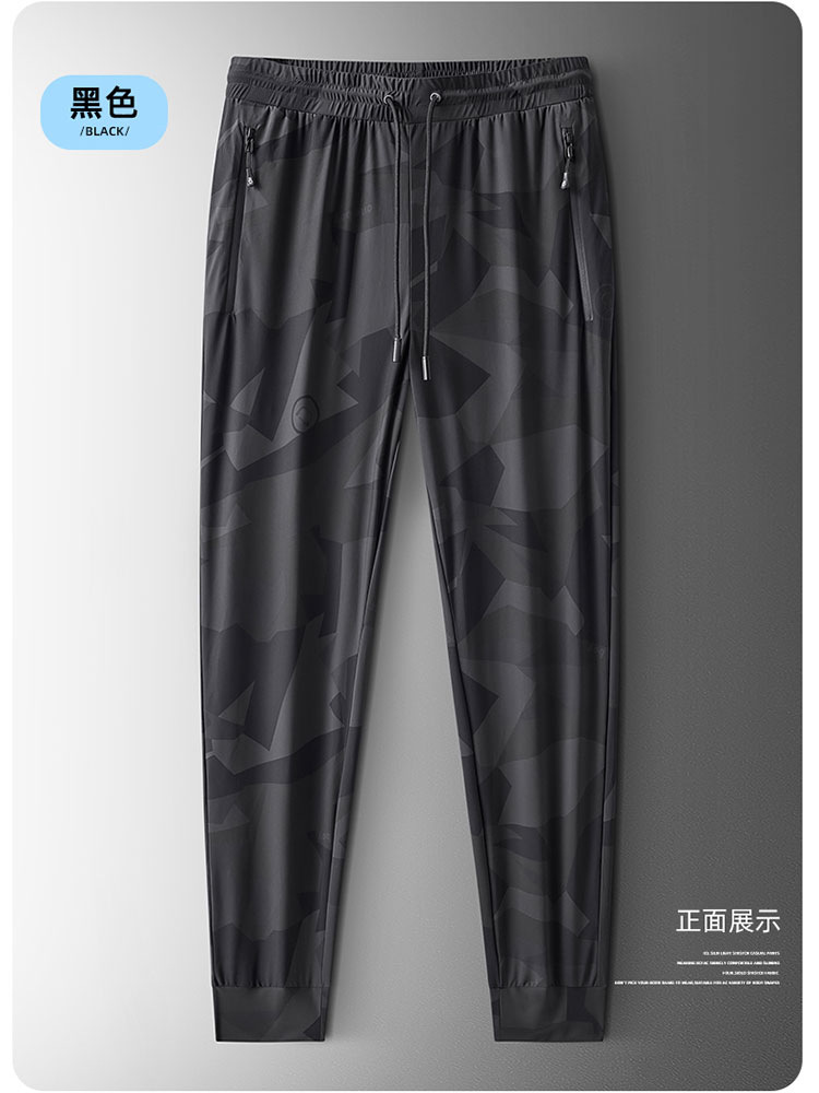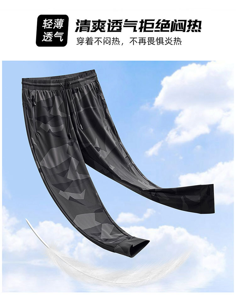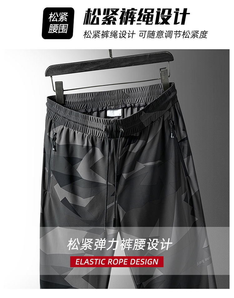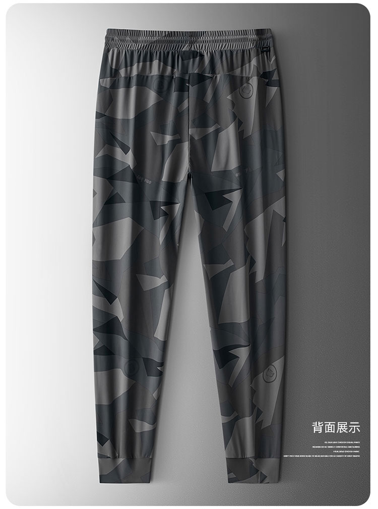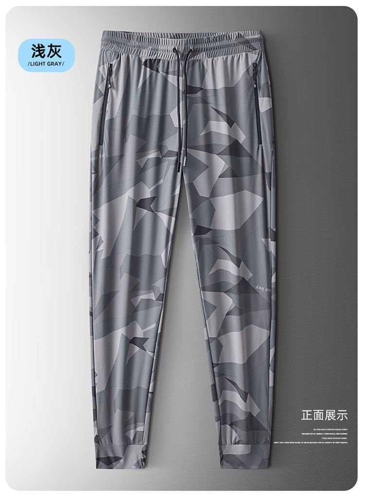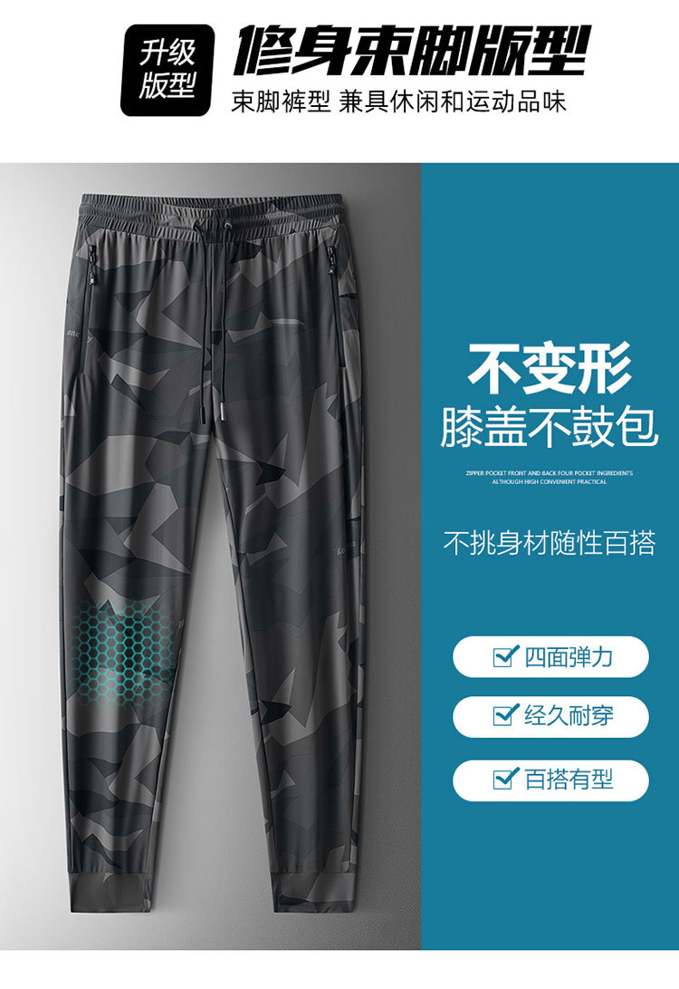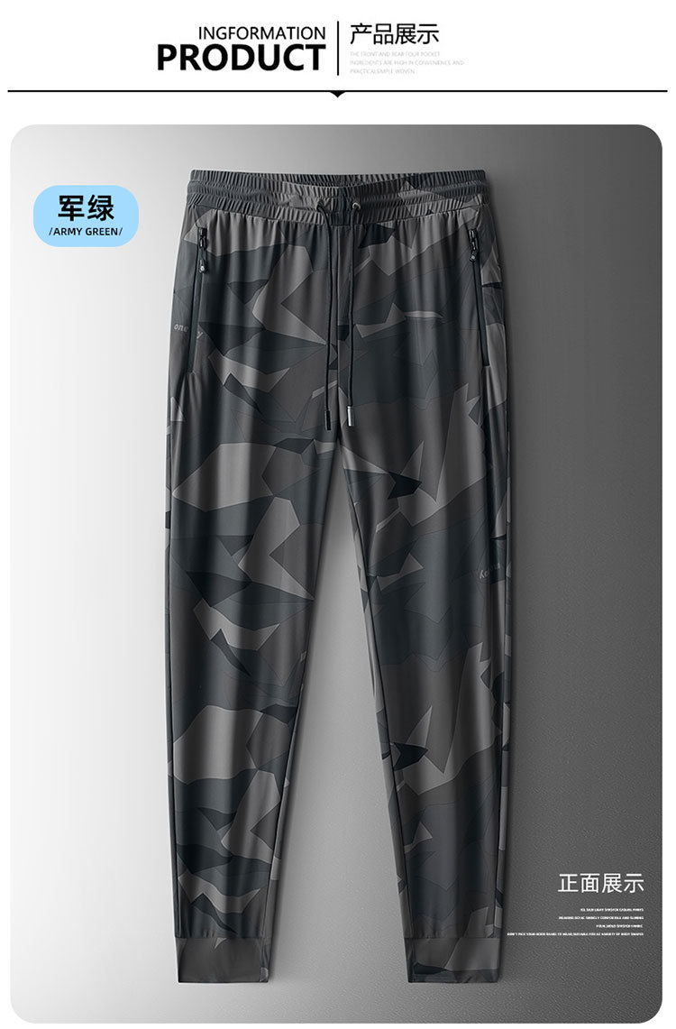 여름 위장 스포츠 캐주얼 바지 남성 스트레치 빠른 건조 얼음 느낌 느슨한 플러스 사이즈 아이스 실크 바지 청소년 트렌디 한 얇은 바지