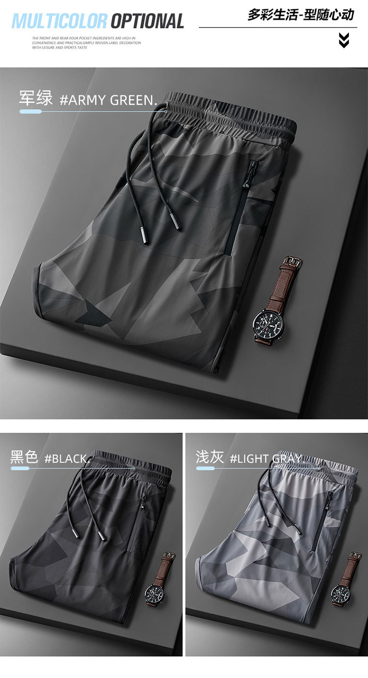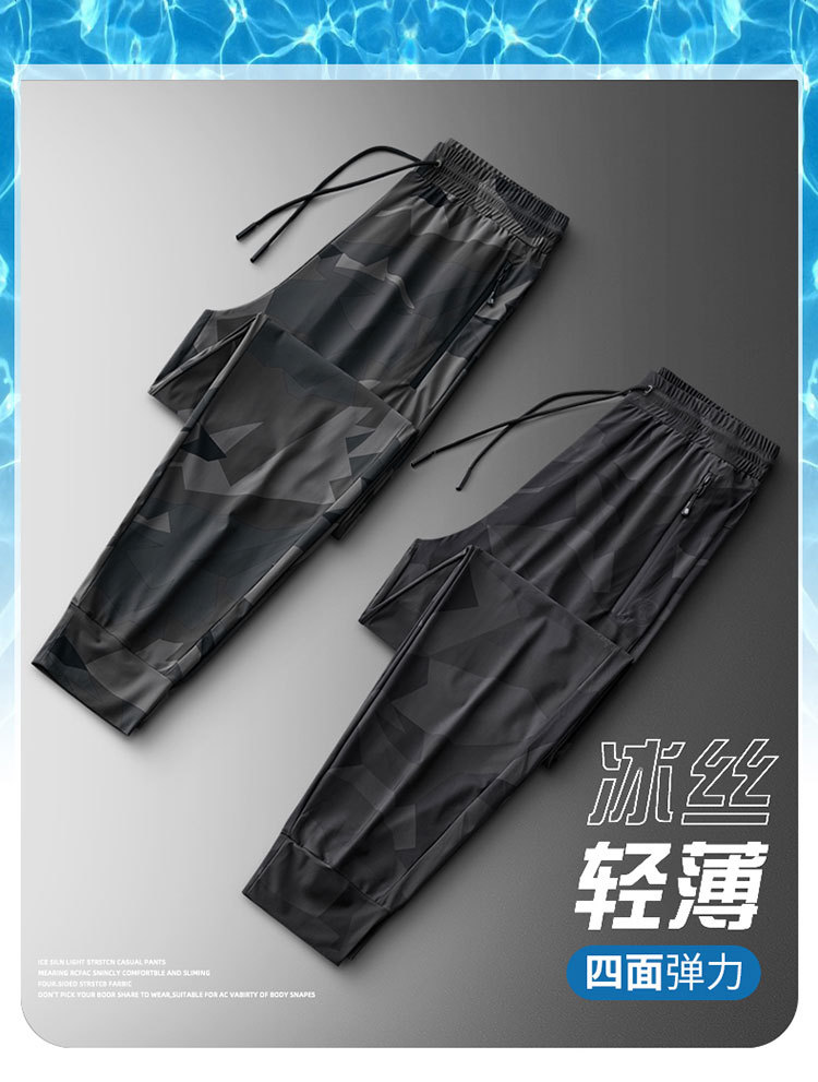 여름 위장 스포츠 캐주얼 바지 남성 스트레치 빠른 건조 얼음 느낌 느슨한 플러스 사이즈 아이스 실크 바지 청소년 트렌디 한 얇은 바지스토어 가기