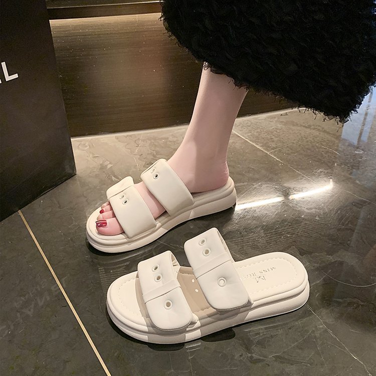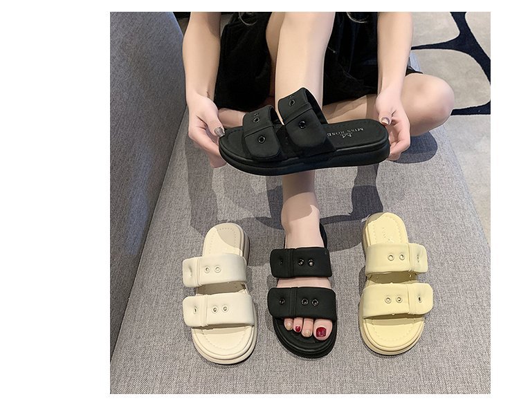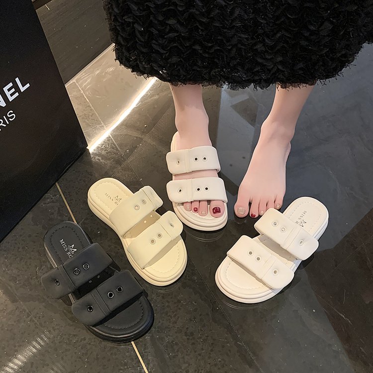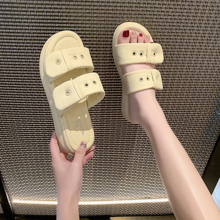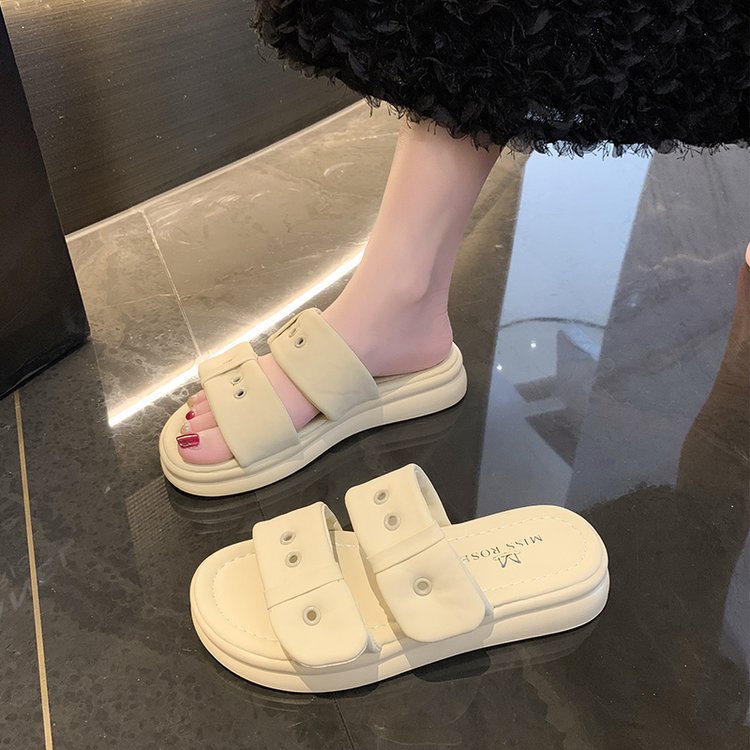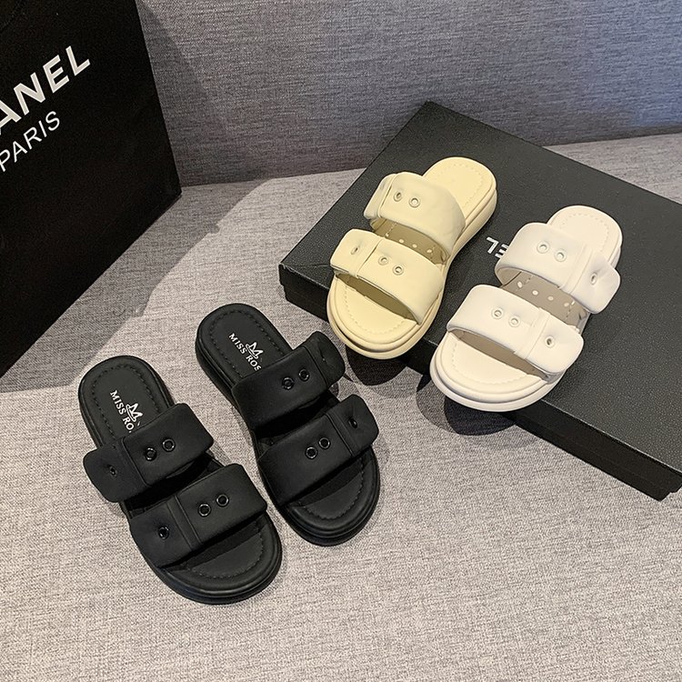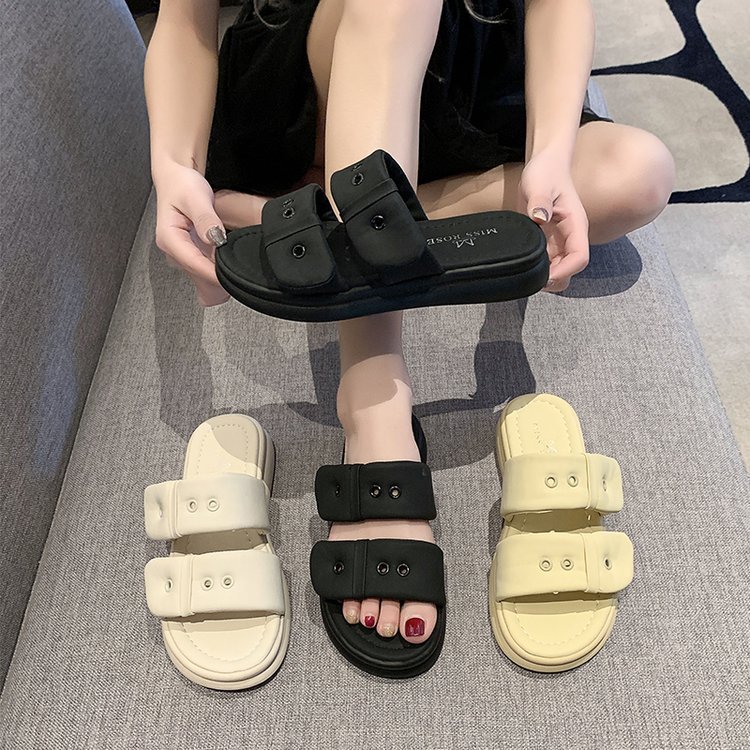 여성용 플랫폼 슬리퍼 여름 야외 2024 새로운 벨트 버클 비치 로마 플랫 슬리퍼 도매스토어 가기