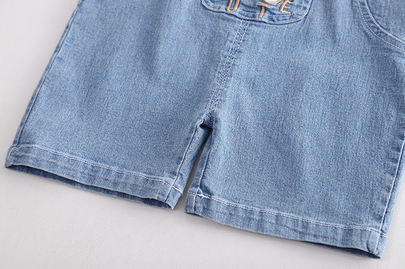 소녀 여름 착용 데님 서스펜더 바지 세트 2024 새로운 서양식 아기 짧은 소매 1-3 세 아기 소녀 반바지