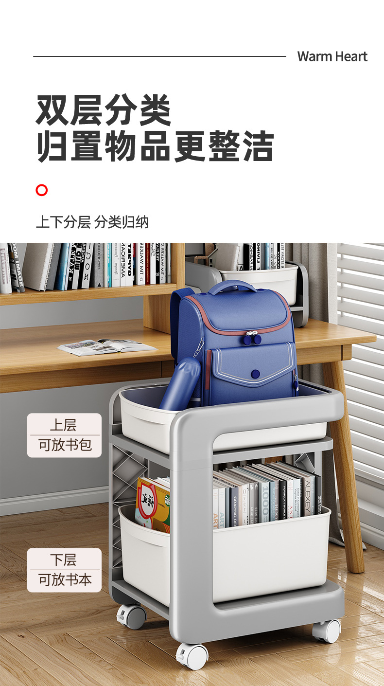 Schoolbag 스토리지 랙 이동식 트롤리 데스크 바닥 스토리지 북 사물함 아티팩트 풀리 스토리지 책장