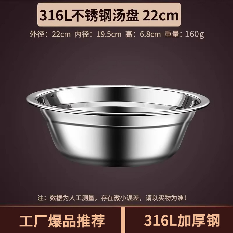 두꺼운 식품 등급 316L 스테인리스 스틸 그릇, 두꺼운 국그릇, 가정용 밥그릇, 원형 작은 그릇, 주방 반찬 국그릇