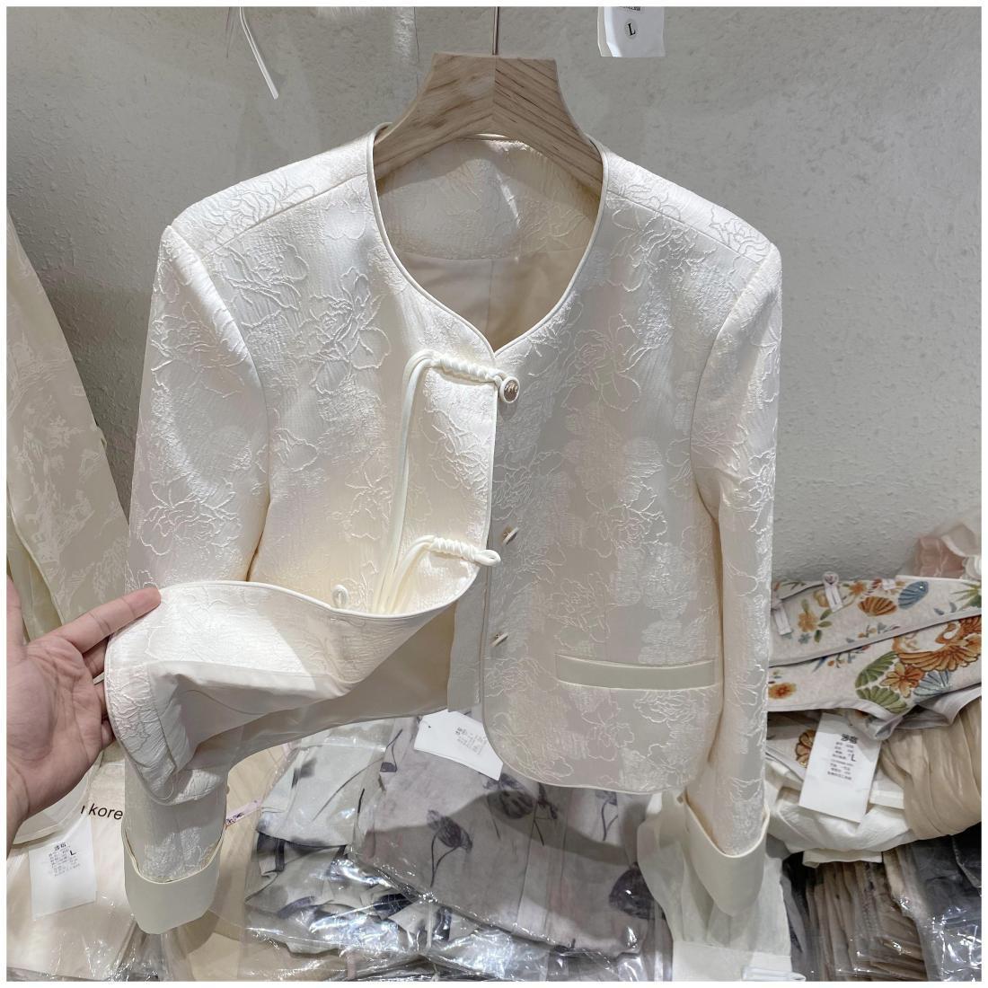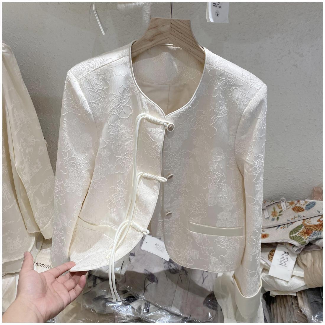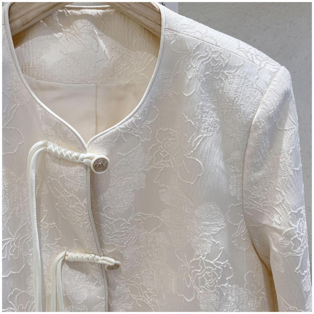 프랑스 샤넬 스타일의 우아한 국가 스타일 코트 2024 봄과 여름 여성을위한 새로운 중국 자카드 라이트 럭셔리 쇼트 탑스토어 가기