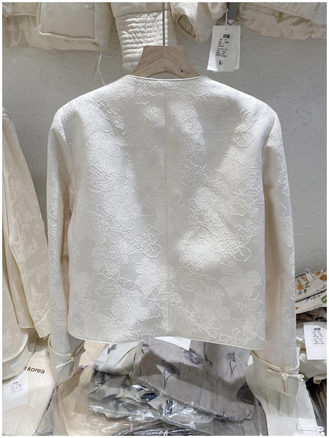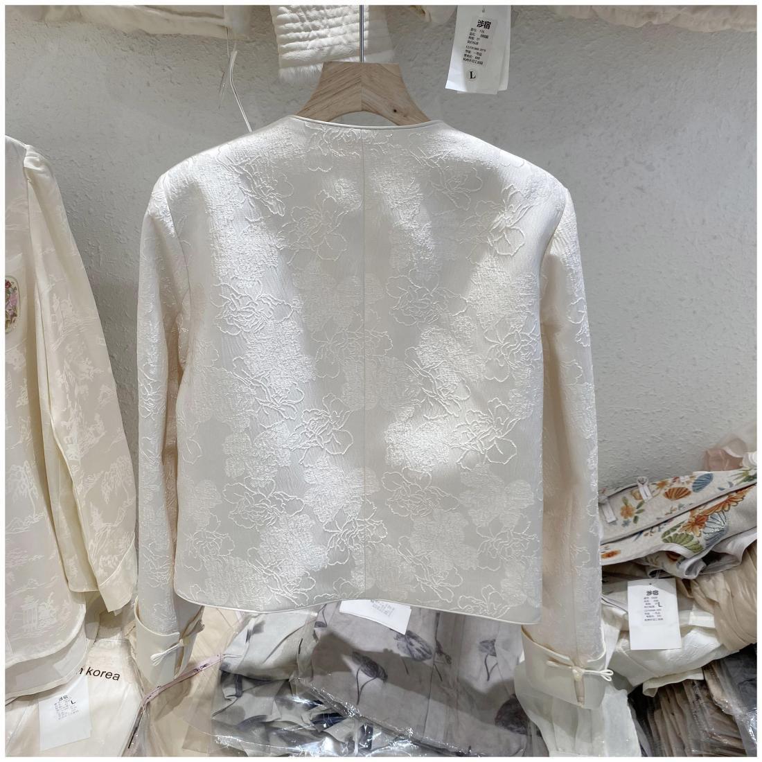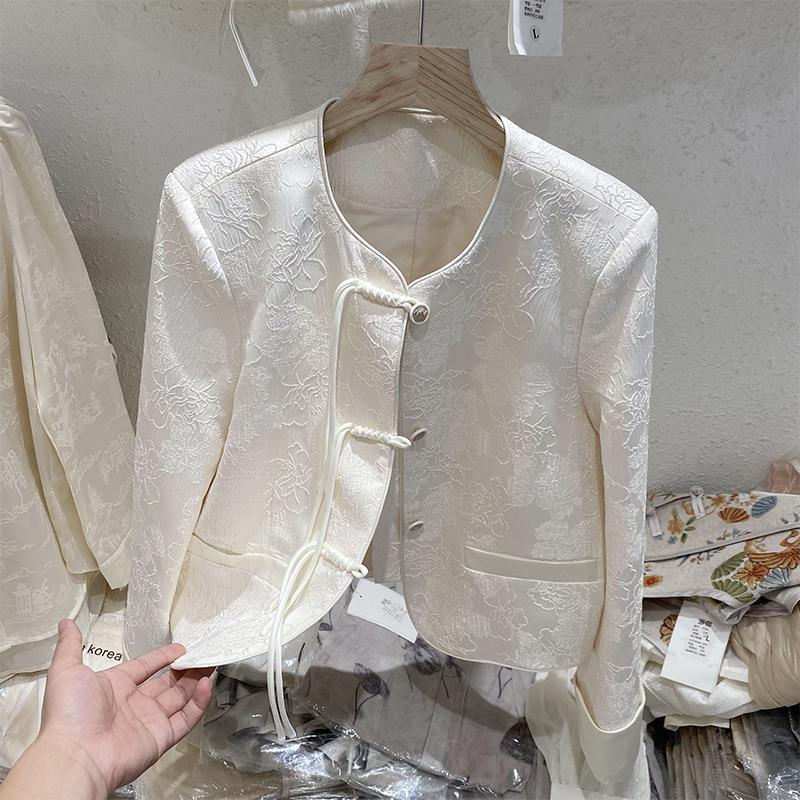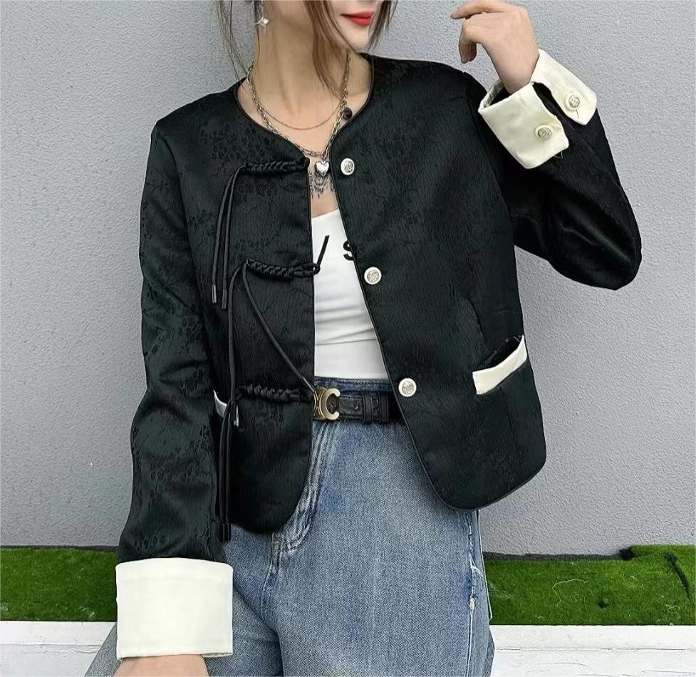 프랑스 샤넬 스타일의 우아한 국가 스타일 코트 2024 봄과 여름 여성을위한 새로운 중국 자카드 라이트 럭셔리 쇼트 탑스토어 가기