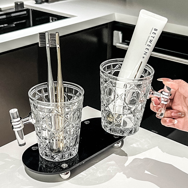 가벼운 고급 간단한 구강 세척 컵 가정용 칫솔질 세척 컵 치아 컵 입 컵 대용량 유리 컵 세트스토어 가기
