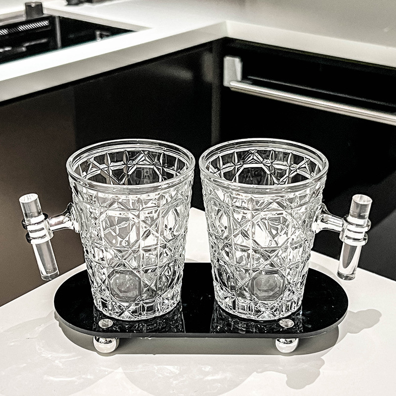 • 핸들 2 + HS 타원형 블랙 트레이가있는 ZXY 수평 패턴 유리