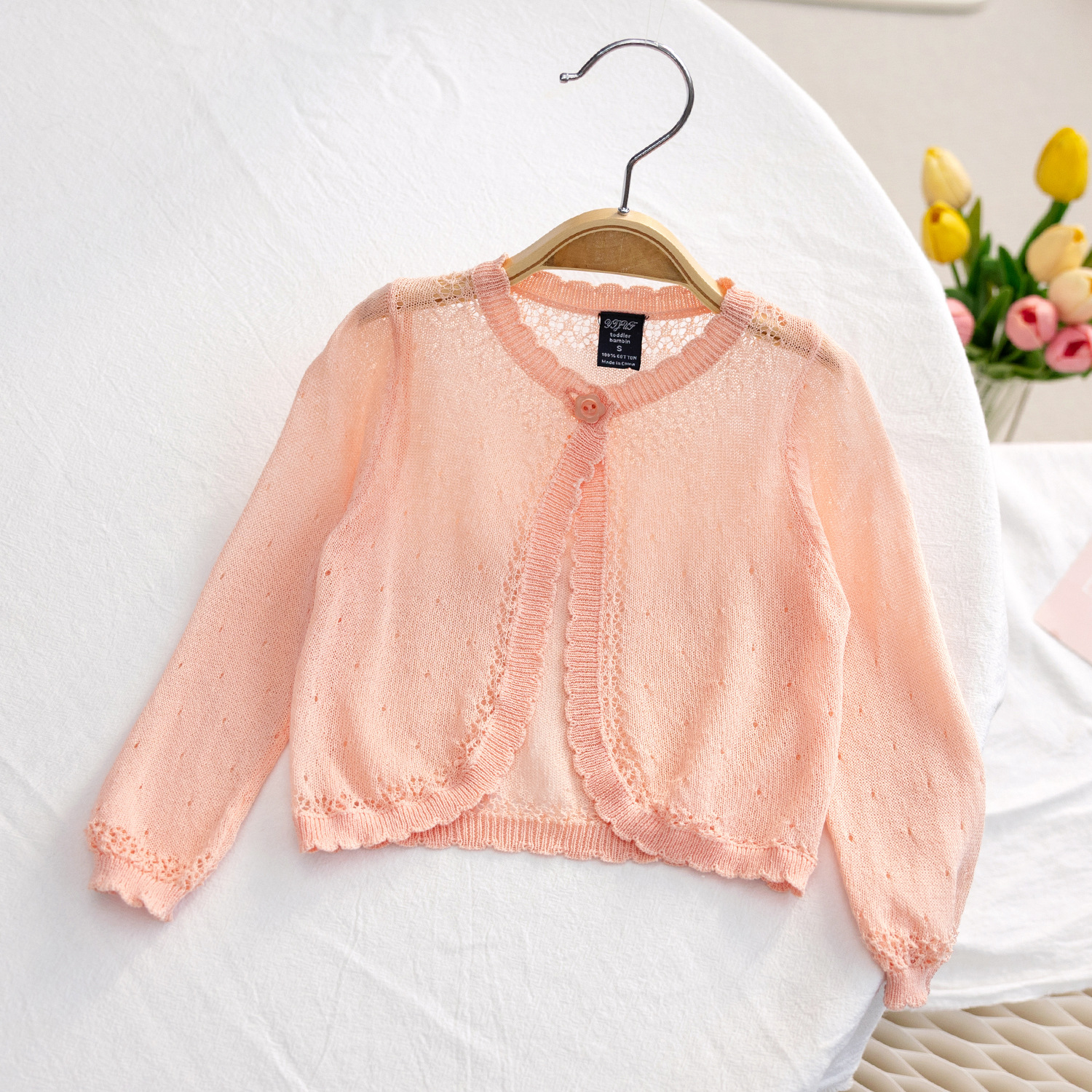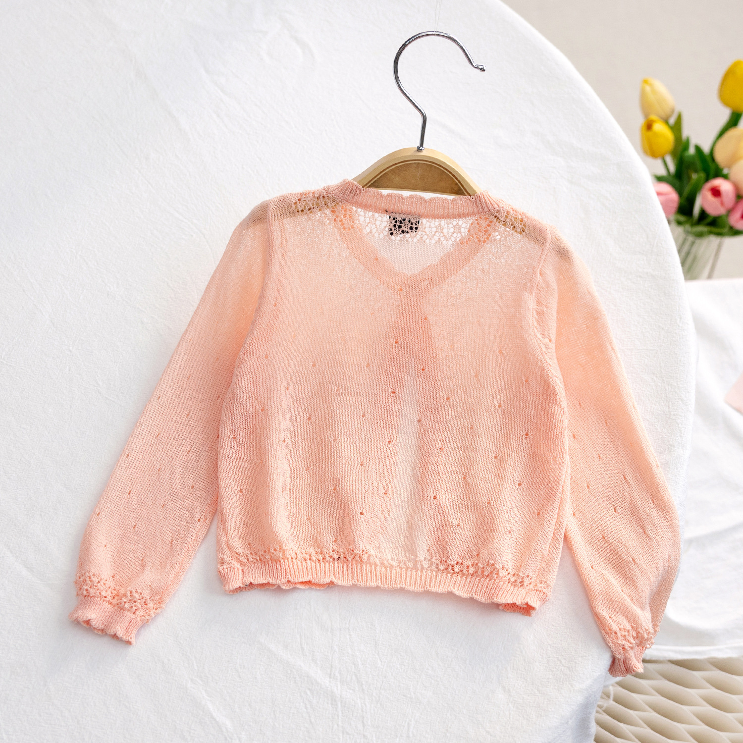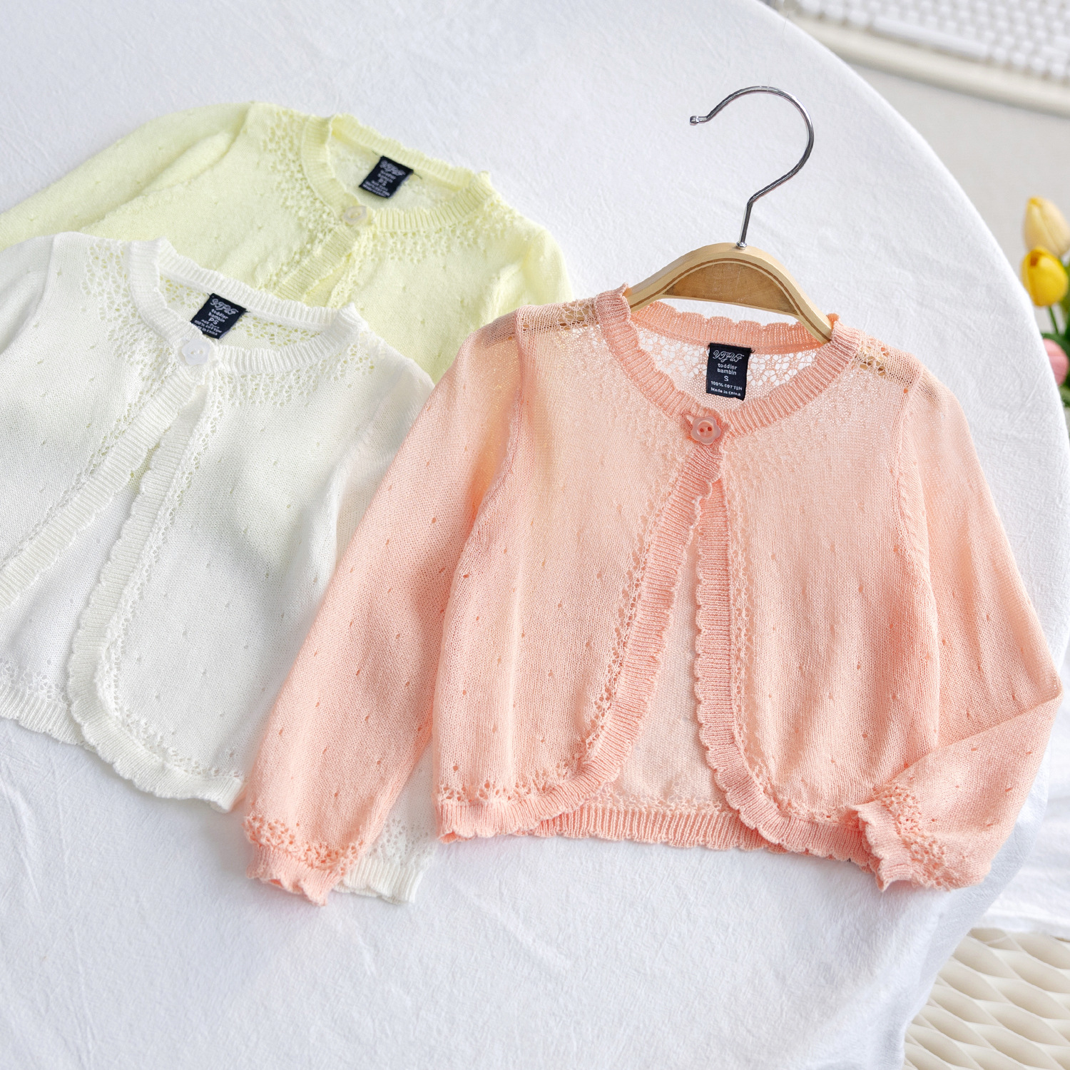 여아용 니트 스웨터, 에어컨 스웨터, 베이비 아이스 실크 가디건, 여름용 얇은 코트, 자외선 차단복, 베이비 스웨터, 숄