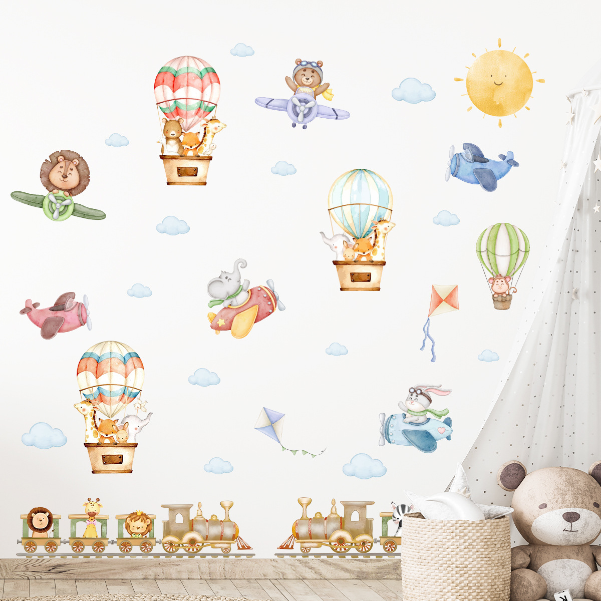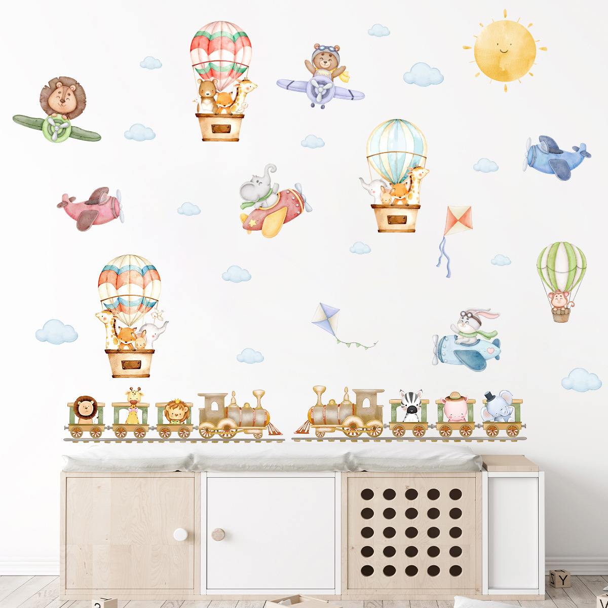만화 귀여운 사자 곰 토끼 기차 벽 스티커 침실 거실 유치원 장식 스티커 BR94696