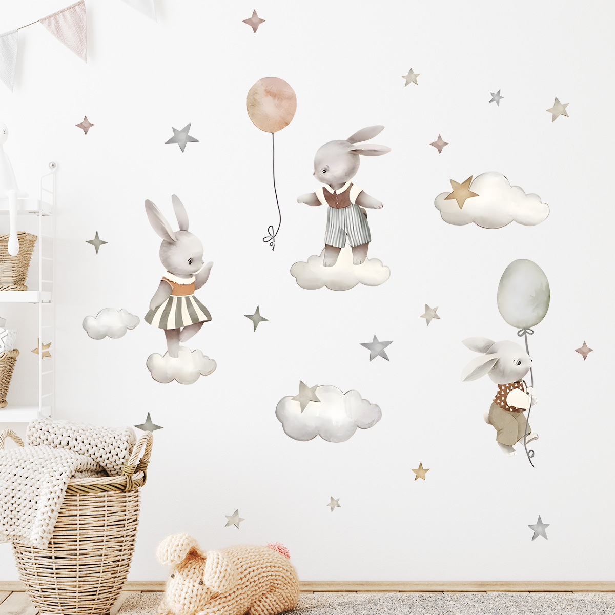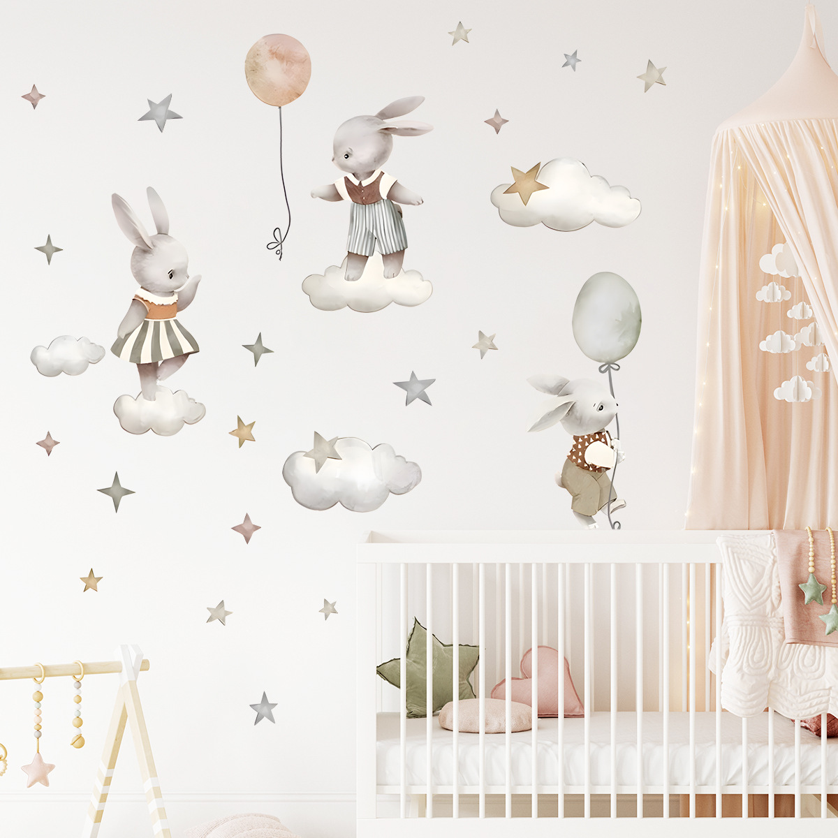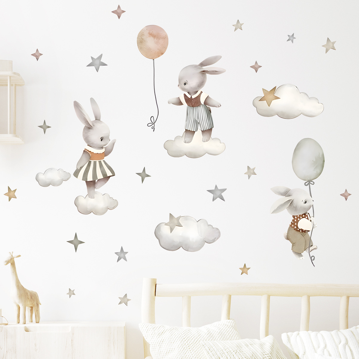 만화 귀여운 구름 토끼 풍선 동물 벽 스티커 침실 거실 유치원 장식 벽 스티커 BR63729