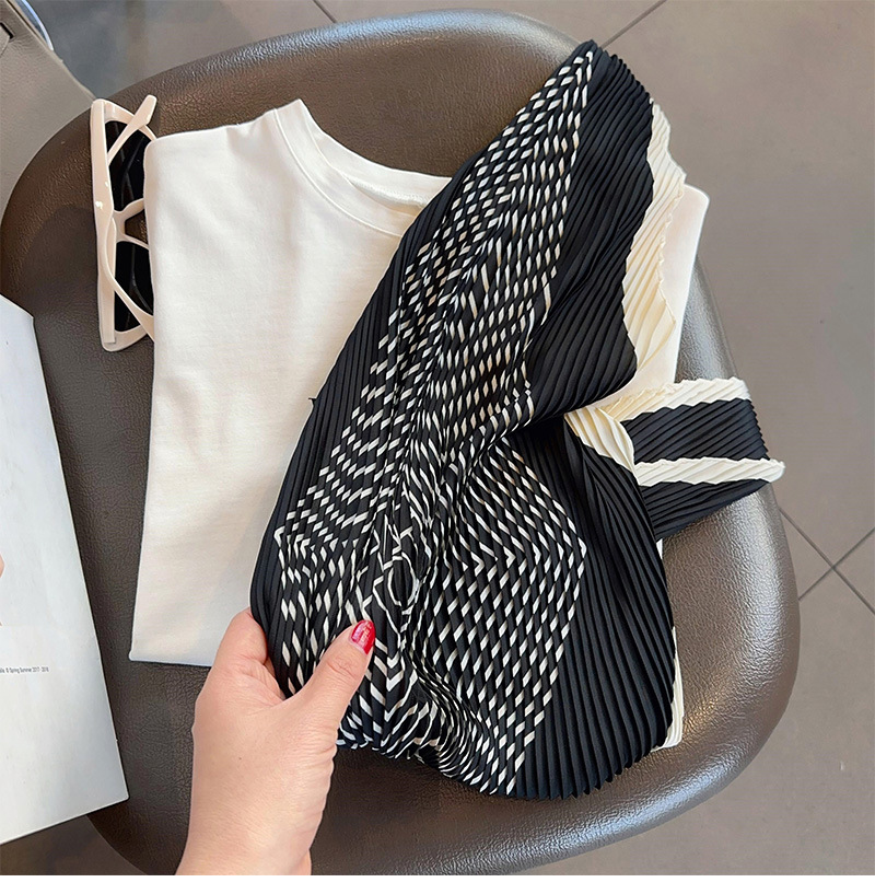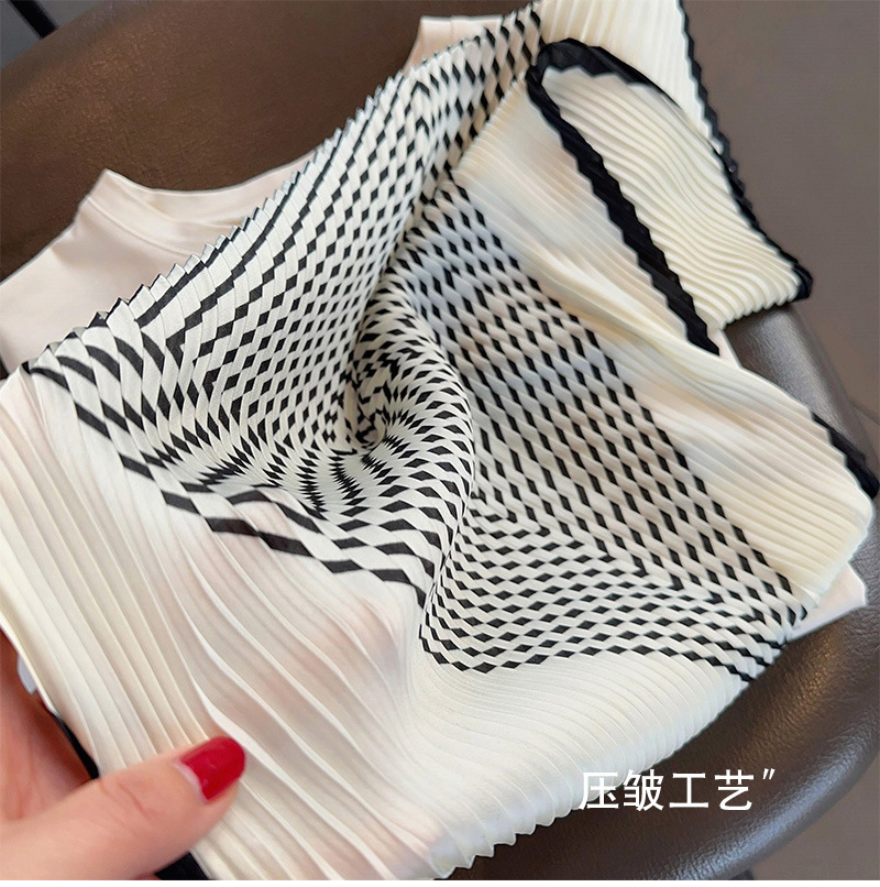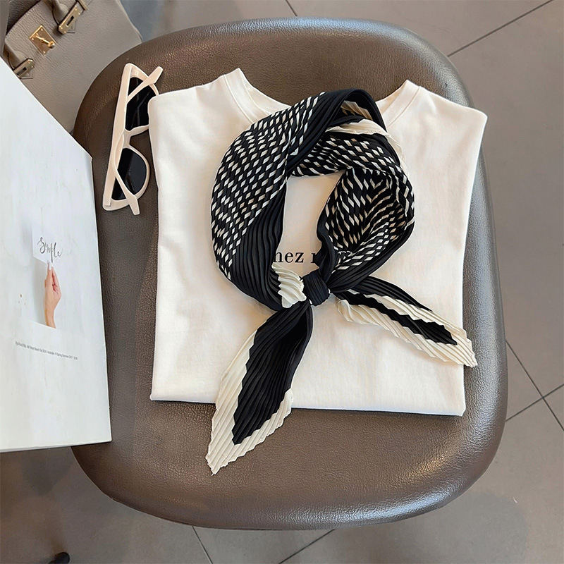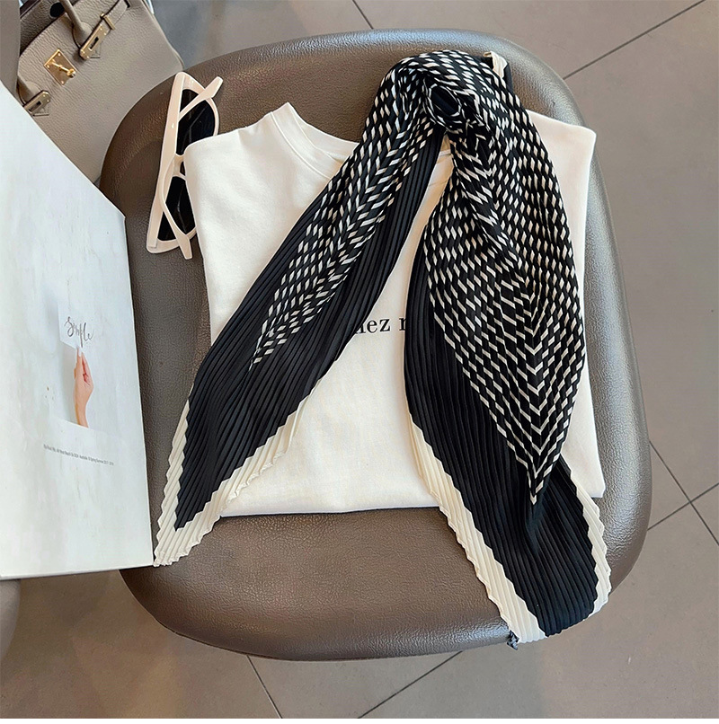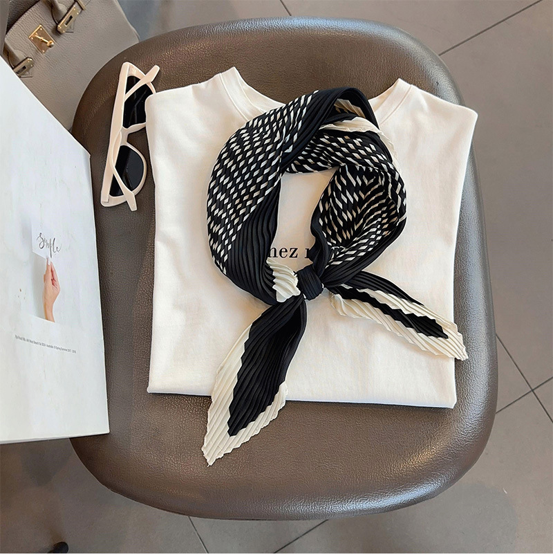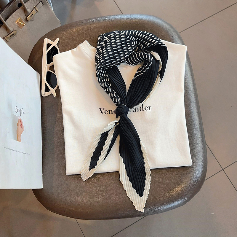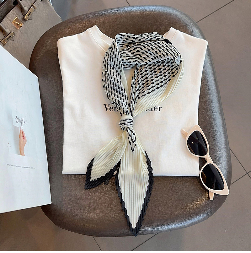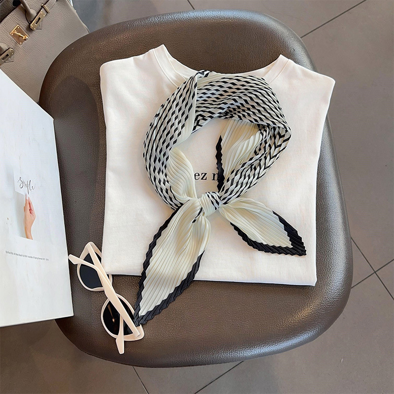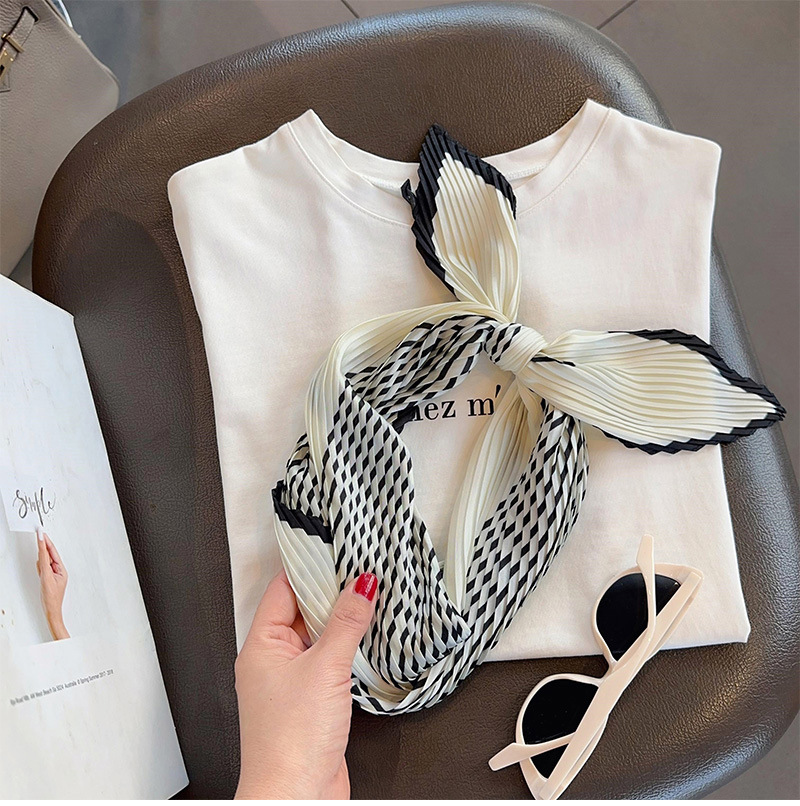 구겨진 스카프 여성의 봄과 여름 우아한 줄무늬 다이아몬드 스카프 한국식 전문 작은 스카프 다용도 장식 강한 스카프 얇은