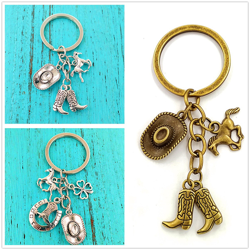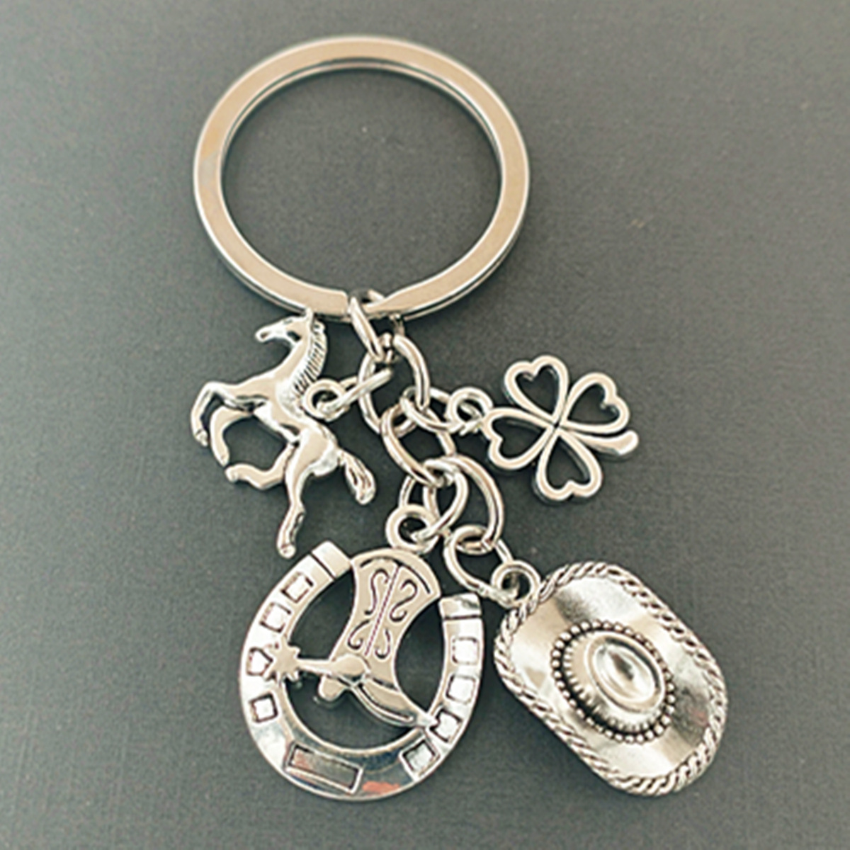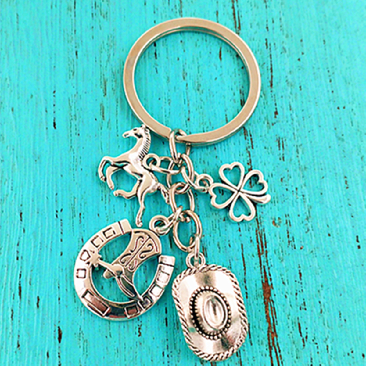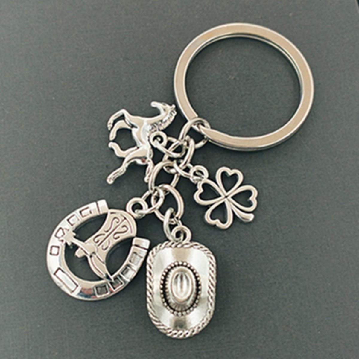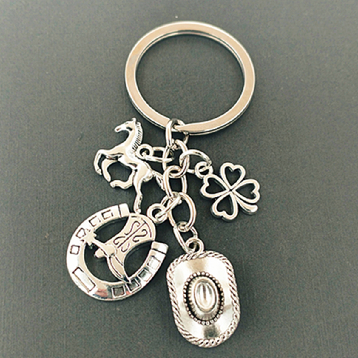 대외 무역 인기있는 서양 데님 행운의 4 잎 클로버 조합 가방 펜던트 창조적 인 성격 자동차 키 체인 액세서리스토어 가기