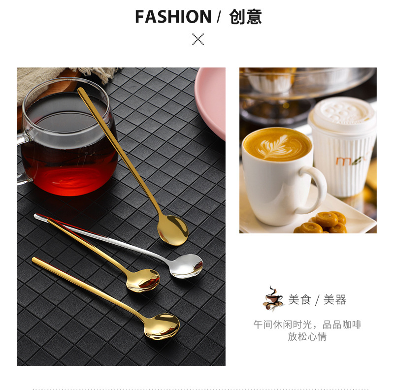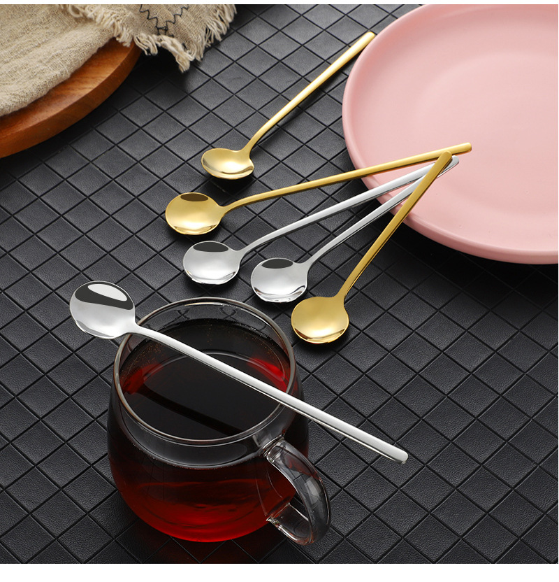 귀여운 작은 숟가락 스테인리스 높은 찾고 황금 커피 스푼 혼합 숟가락 디저트 숟가락 아이스크림 숟가락 긴 손잡이 얼음 숟가락