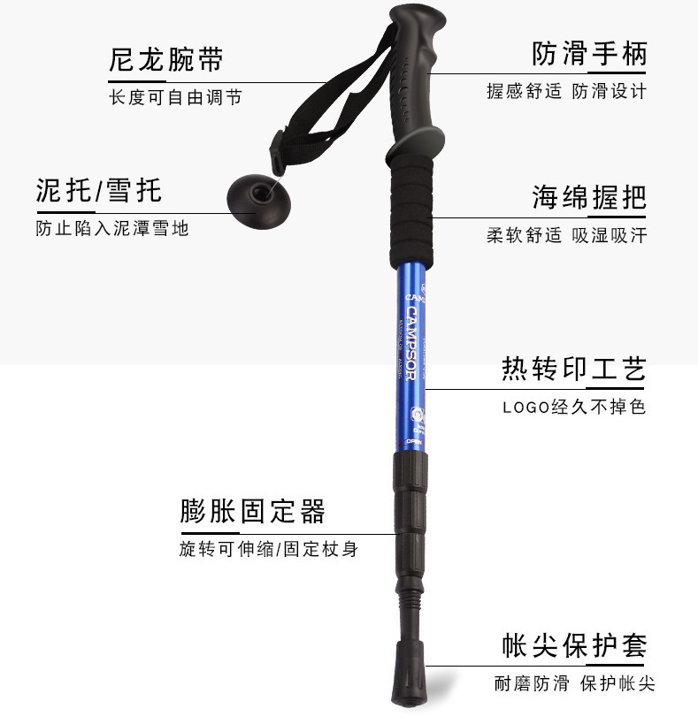 登山杖为中性印刷,有刻度尺,无logo,logo可定制